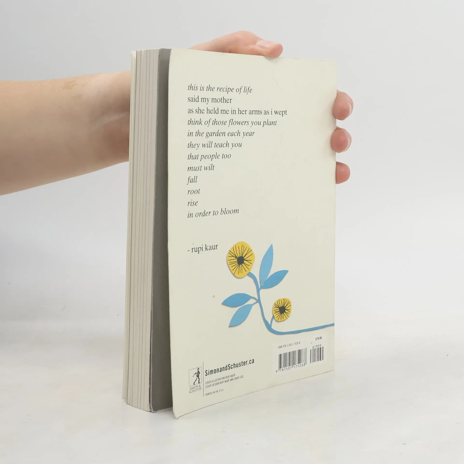 From Rupi Kaur, the #1 New York Times bestselling author of milk and honey comes her long-awaited second collection of poetry. A vibrant and transcendent journey about growth and healing. Ancestry and honoring one’s roots. Expatriation and rising up to find a home within yourself. Divided into five chapters and illustrated by Kaur, the sun and her flowers is a journey of wilting, falling, rooting, rising, and blooming. A celebration of love in all its forms. this is the recipe of life said my mother as she held me in her arms as i wept think of those flowers you plant in the garden each year they will teach you that people too must wilt fall root rise in order to bloom