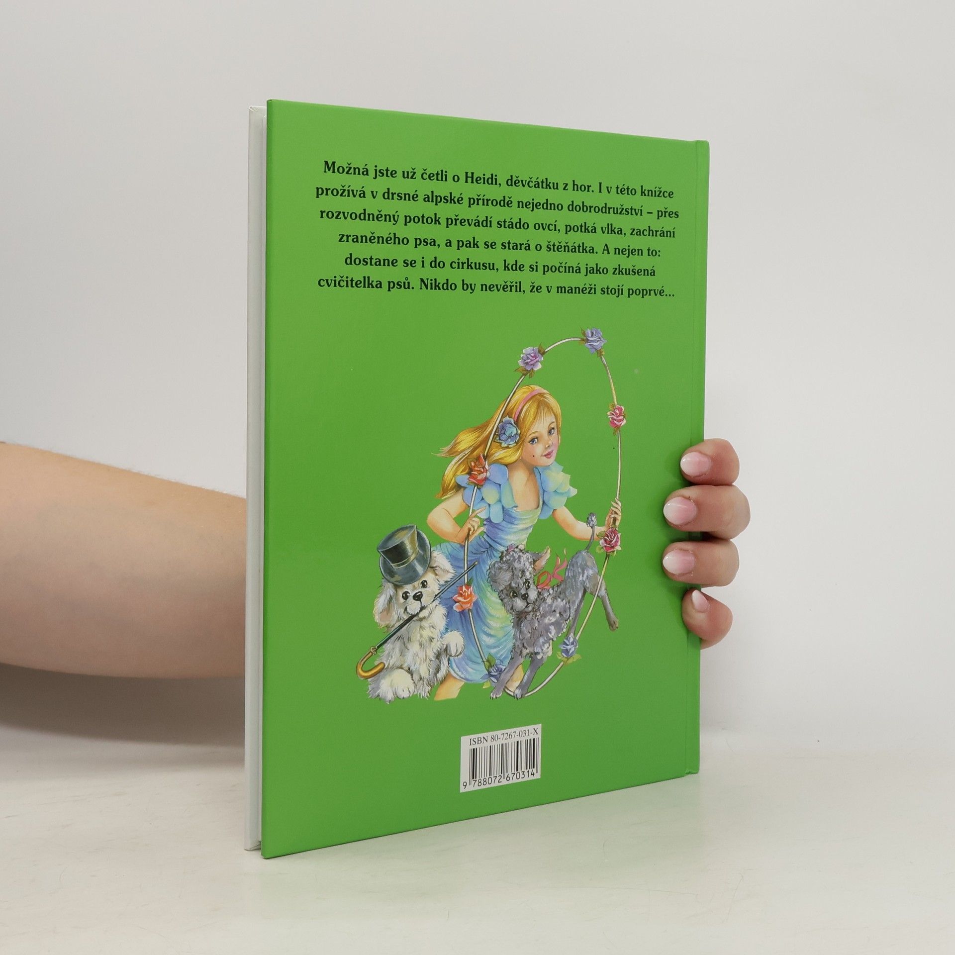 Možná jste už četli o Heidi, děvčátku z hor. I v této knížce prožívá v drsné alpské přírodě nejedno dobrodružství - přes rozvodněný potok převádí stádo ovcí, potká vlka, zachrání zraněného psa, a pak se stará o štěňátka. A nejen to: dostane se i do cirkusu, kde si počíná jako zkušená cvičitelka psů. Nikdo by nevěřil, že v manéži stojí poprvé...