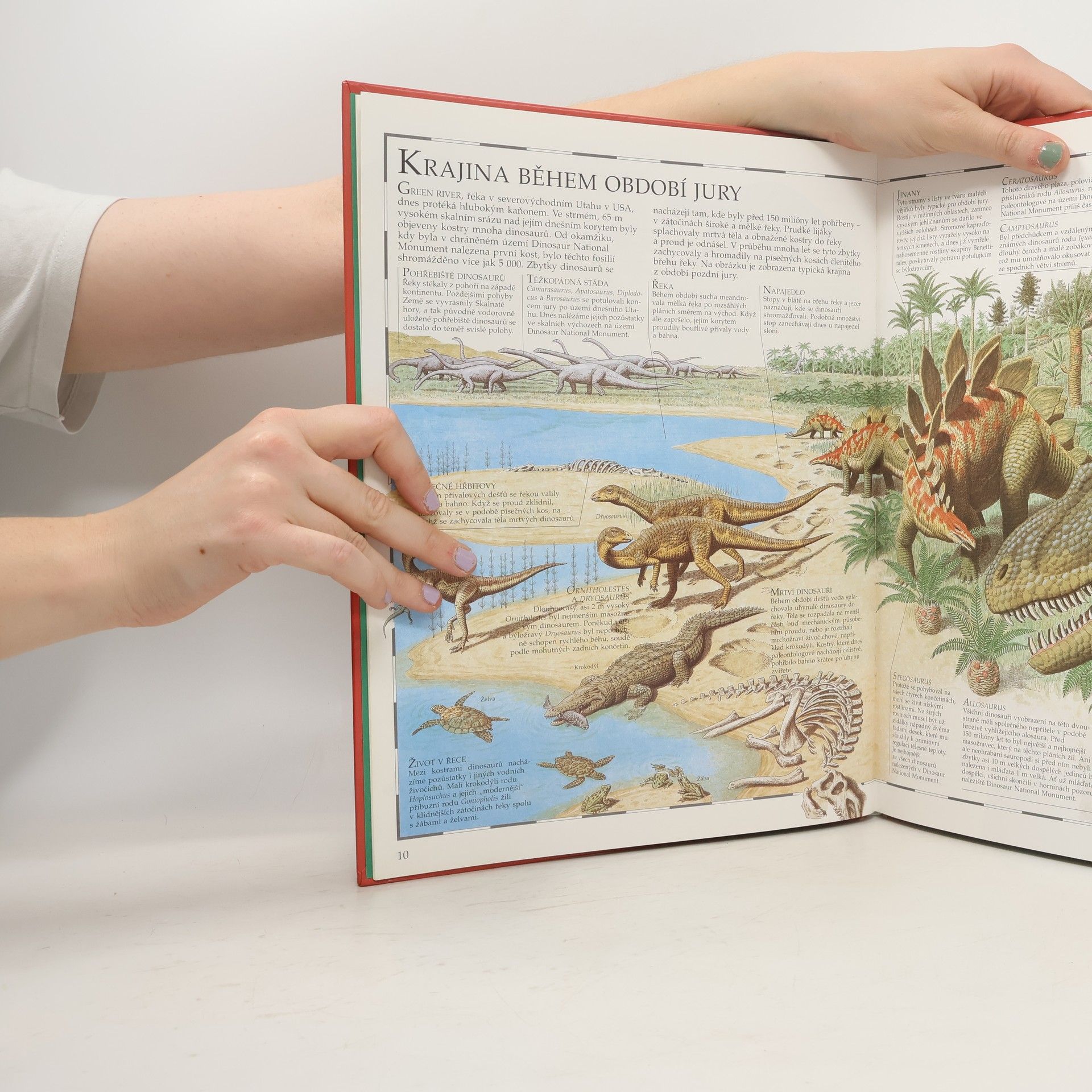 Nové pohledy na dinosaury, detailní mapy, vynikající věrné ilustrace, informativní text. Naleznete zde informace, kteří dinosauři byli největší, kteří dinosauři měli nejmenší mozek, proč Spinosaurus měl na těle trny, kteří dinosauři nedosahovali ani velikosti vejce. Dozvíte se kteří dinosauři se pohybovali nejrychleji, kdo to byli "kachní" dinosauři a čím byli pozoruhodní, jak Apatosaurus získal novou hlavu, co jsou to fosilie a jak vznikají. Poznáte kde a jak dinosauři žili, čím se lišili kontinenty v minulosti od nynějších, která naleziště jsou na dinosaury nejbohatší, co je potřeba při paleontologických výkopech a preparaci.