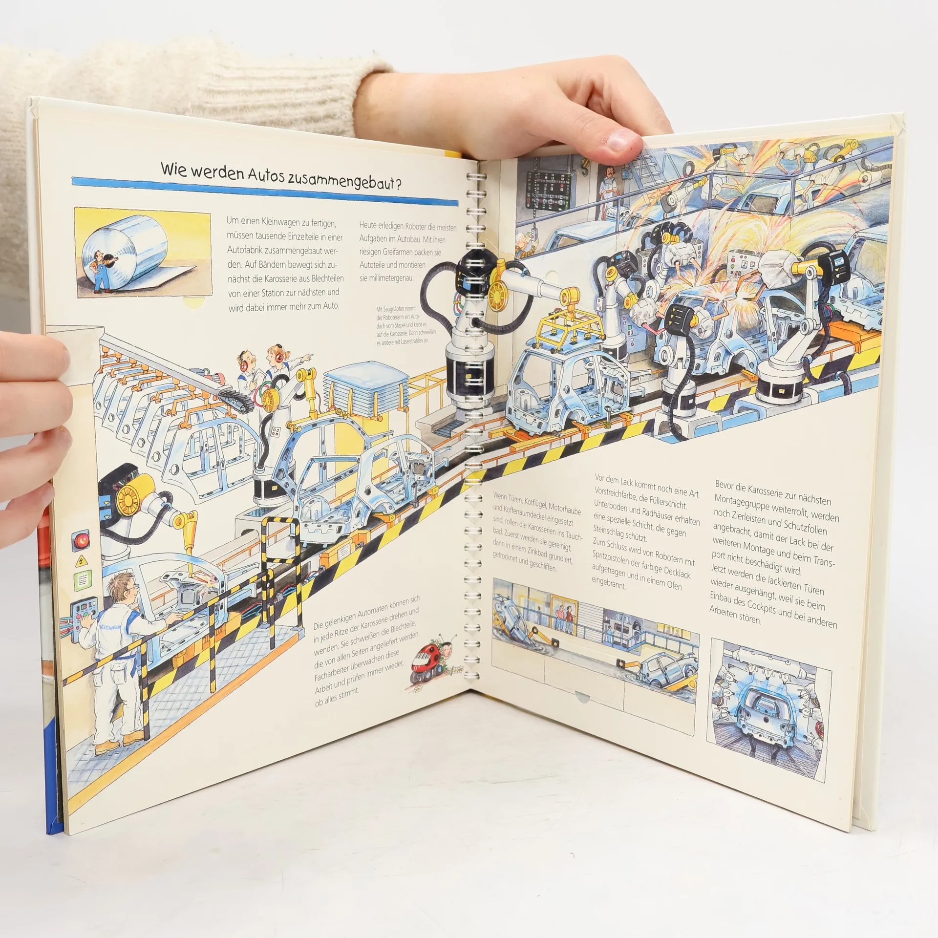Autos sind ein wichtiger Bestandteil des kindlichen Alltags. Umso spannender ist es, einmal zu sehen, wie ein Auto gebaut wird. Kleine und auch große Autofans haben hier die Gelegenheit, endlich mal einen Blick in die Produktionshalle eines Autoherstellers zu werfen. Vom Entwurf eines neuen Automodells über die vielen Sicherheitstests bis zur „Hochzeit“ - dem Zusammenfügen der Karosserie mit dem Fahrgestell - wird technisch genau und doch spielerisch in Wort und Bild erläutert, wie ein Auto entsteht.
