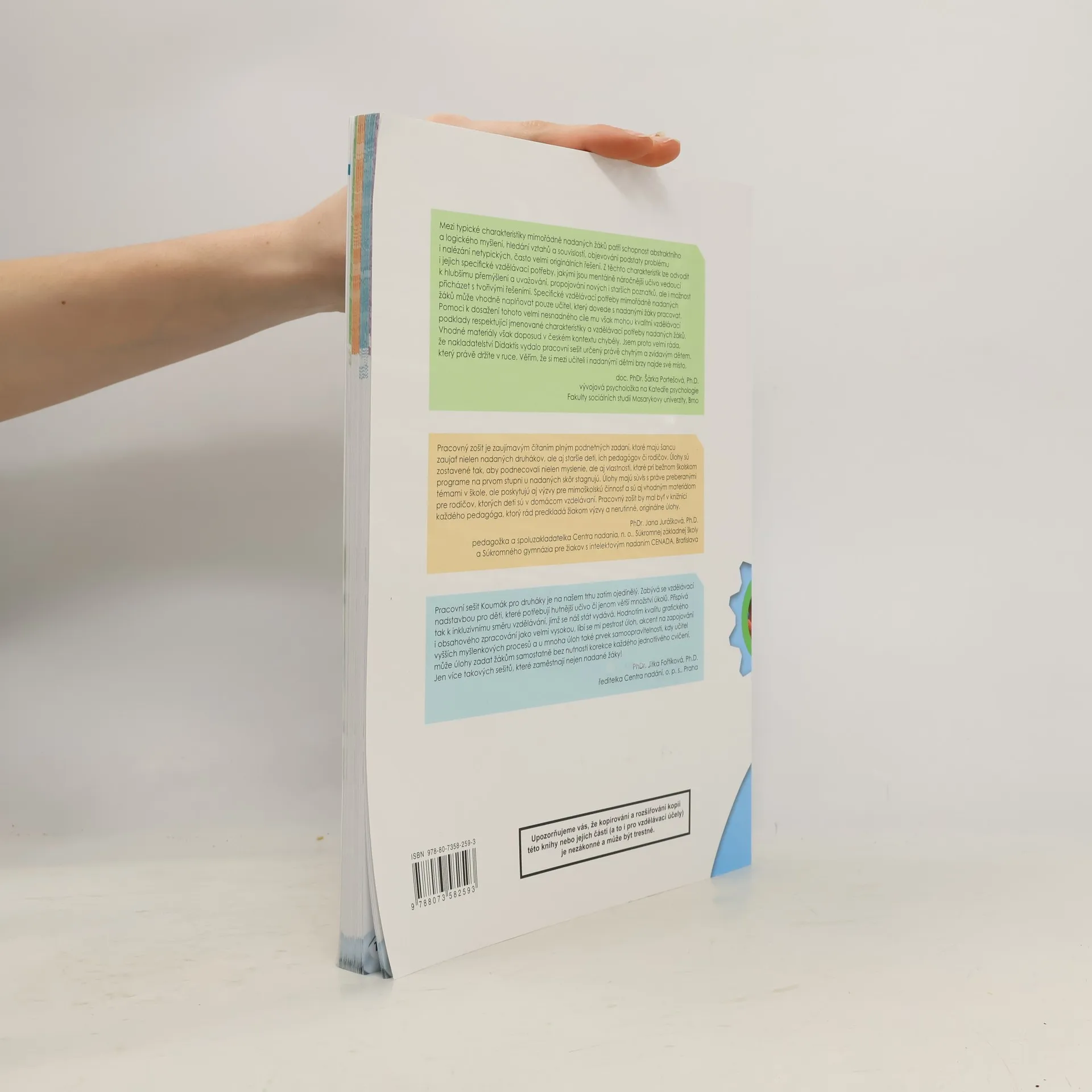 Pracovní sešity znají z hodin matematiky, češtiny a prvouky všechny děti na prvním stupni základní školy. Co když je však některé dítě hodně zvídavé, obzvlášť rychlé nebo velmi nadané? Nakladatelství Didaktis nyní přichází s ojedinělým konceptem učebních materiálů určených právě pro zvídavé, rozumově (i mimořádně) nadané žáky, a to ve formě rozšiřujícího pracovního sešitu vhodného k jakýmkoli učebnicím matematiky, češtiny a prvouky. Pracovní sešit přináší zajímavé texty s přírodovědnými i humanitními tématy a mezipředmětové projekty s úlohami rozvíjejícími čtenářskou gramotnost, schopnost práce s informacemi a rozšiřujícími poznatky z různých oblastí života nad rámec RVP. • Úkoly k uvedeným textům rozvíjejí lingvistické dovednosti, matematické, logické a kritické myšlení, prostorovou představivost, aktivní práci s informacemi, tvořivost, postřeh atd. • Obsahuje rovněž sbírku náročnějších úloh k učivu matematiky a českého jazyka podle tematického plánu 2. ročníku. Vyučující těmito úlohami snadno vyplní či doplní konkrétní hodinu, zbude-li mu např. na jejím konci chvíle času, a to v souladu se vzdělávacími cíli a individuálními potřebami žáků. • Je plnobarevný a obohacený o řadu poutavých ilustrací, fotografií, tabulek, schémat a grafů. • Úkoly jsou vhodné jak pro samostatnou práci, tak pro práci ve dvojicích či skupinkách. • Klíč k úlohám bude pro učitele a rodiče k dispozici v elektronické podobě na stránkách nakladatelství.