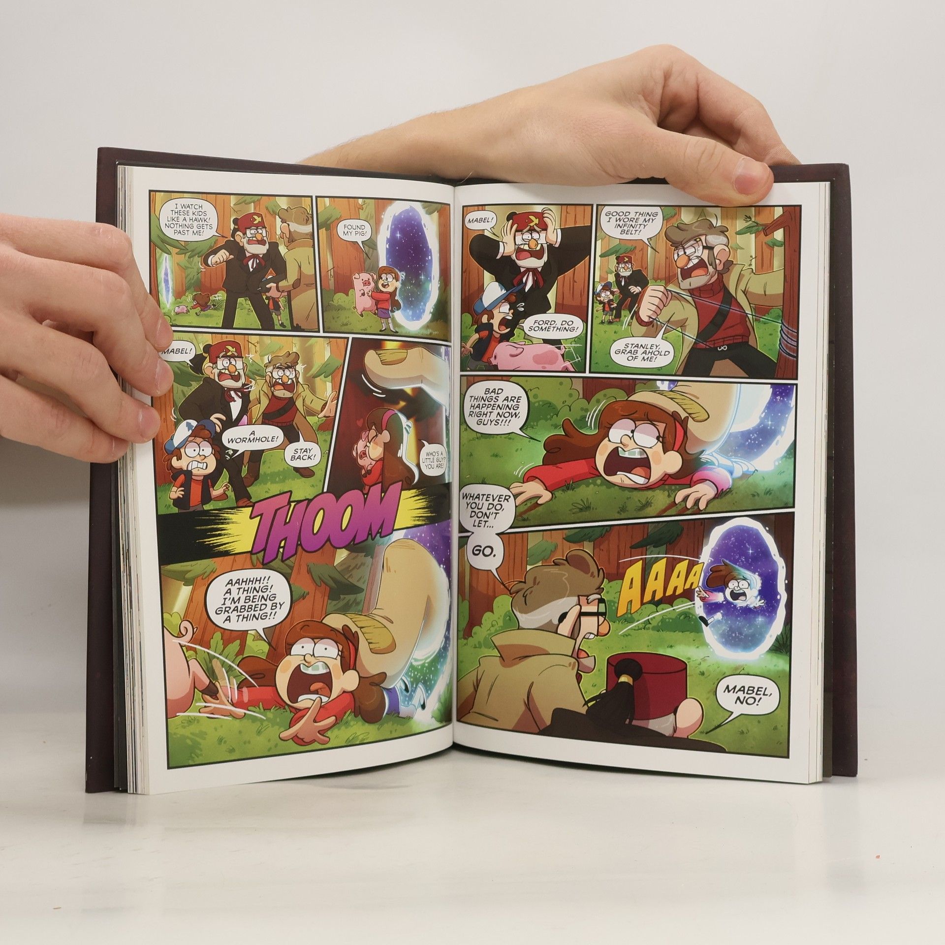 A collection of four all-new strange stories from the sleepy town of Gravity Falls in one original New York Times bestselling graphic novel. Written by Alex Hirsch. As told by Shmebulock. The first story, Face It, is about Pacifica summoning a monster who steals Mabel's face. The second story, Comix Up, is about Stan getting trapped in a world of comics. In Don't Dimension It, Mabel gets pulled into a multi-verse filled with many different Mabels. And in Pines Brothers: The Jersey Devil's in the Details, a young Stan and Ford attempt to catch a supernatural jewel thief. Illustrated by Asaf Hanuka, Dana Terrace, Ian Worrel, Jacob Chabot, Jim Campbell, Joe Pitt, Kyle Smeallie, Meredith Gran, Mike Holmes, Priscilla Tang, Serina Hernandez, Stephanie Ramirez, and Valerie Halla.