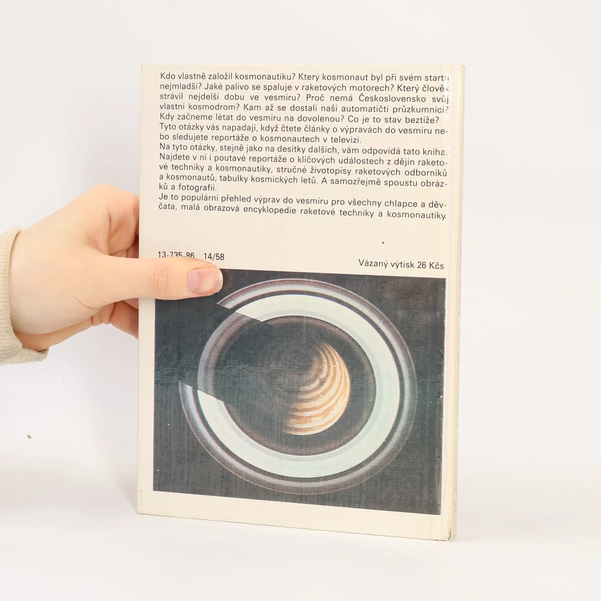 Jedná se o populární přehled výprav do vesmíru - malá obrazová encyklopedie raketové techniky a kosmonautiky. Kdo vlastně založil kosmonautiku? Který kosmonaut byl při svém startu nejmladší? Jaké palivo se spaluje v raketových motorech? Který člověk strávil nejdelší dobu ve vesmíru? Proč nemá Československo svůj vlastní kosmodrom? Kam až se dostali naši automatičtí průzkumníci? Kdy začneme létat do vesmíru na dovolenou? Co je to stav beztíže? Tyto otázky vás napadají, když čtete články o výpravách do vesmíru nebo sledujete reportáže o kosmonautech v televizi. Na tyto otázky, stejně jako na desítky dalších, vám odpoví tato kniha. Najdete v ní i poutavé reportáže o klíčových událostech z dějin raketové techniky a kosmonautiky, stručné životopisy raketových odborníků a kosmonautů, tabulky kosmických letů. A samozřejmě spoustu obrázků a fotografií.