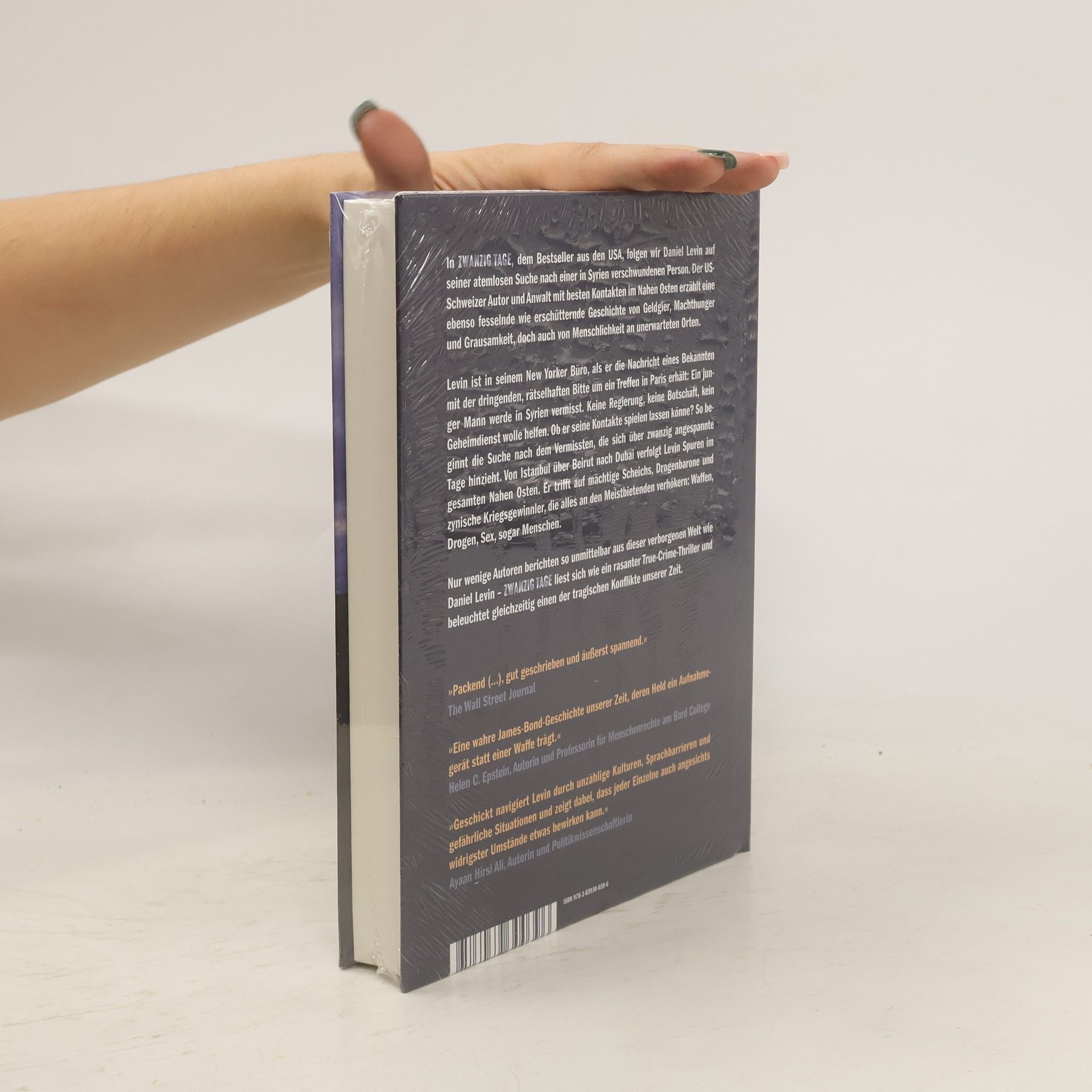 In »Zwanzig Tage«, dem Bestseller aus den USA, folgt man Daniel Levin in atemlosen 20 Tagen auf der Suche nach einer in Syrien verschwundenen Person. Der Autor und Jurist mit besten Kontakten im Mittleren Osten erzählt eine schockierend wahre und hochaktuelle Geschichte von Bösartigkeit, Gier und Machthunger, aber auch von Menschlichkeit an unerwarteten Orten. tief ein in eine dunkle Welt, zu der nur wenige Zutritt haben. Eine Untergrund-Kriegindustrie in der alles käuflich ist: Waffen, Drogen, sogar Menschen. Er präsentiert eine faszinierende Studie darüber, wie Menschen Gefallen tun, um – auch Jahre später – Gegengefallen einzufordern und wie man mittels Hebelwirkung bekommt, was man will. »Zwanzig Tage« ist eine als rasanter Thriller verpackte True Crime Story. Und ein Muss für alle, die am Nahen Osten, an International Affairs und an Machtdynamiken interessiert sind.