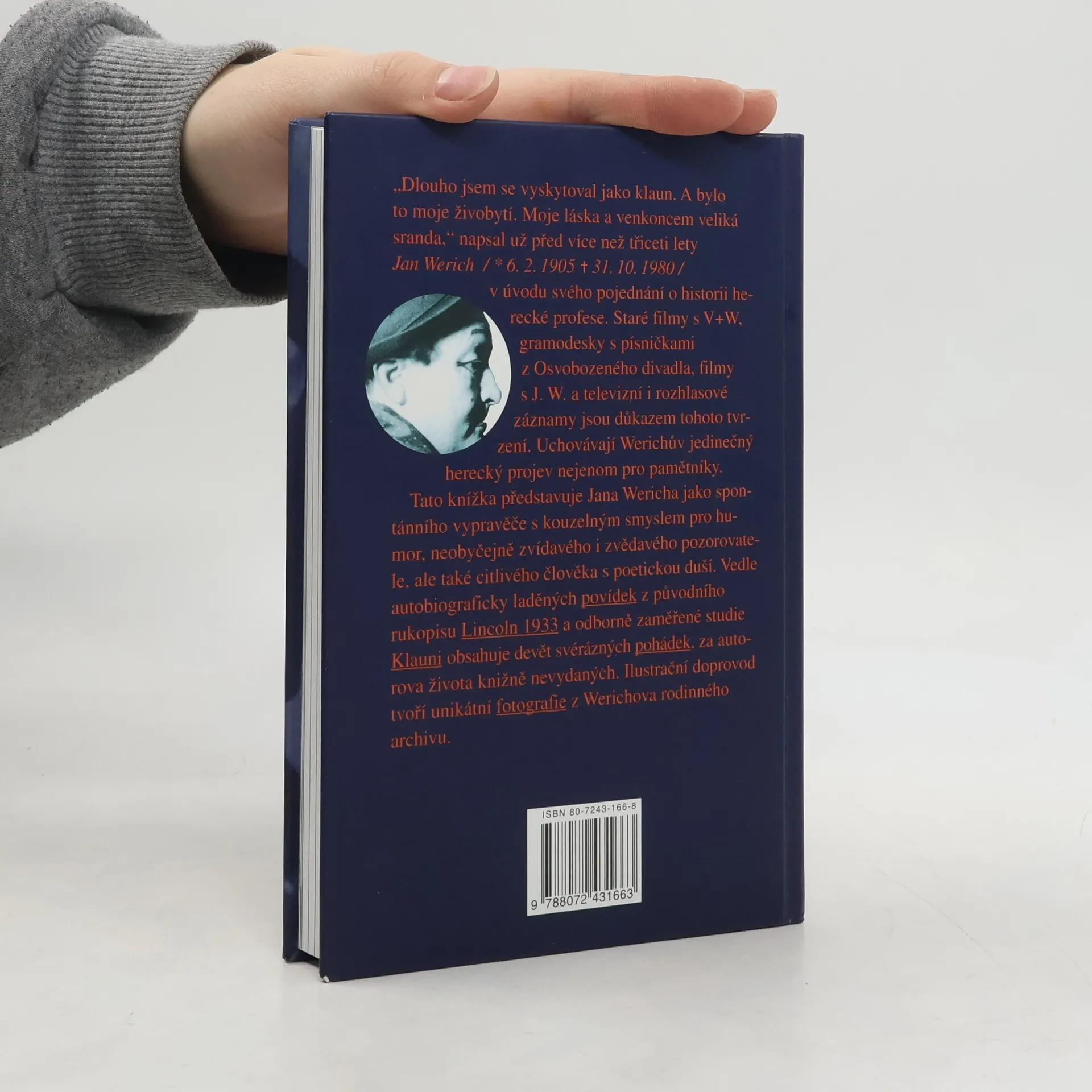 Tato knížka představuje Jana Wericha jako spontánního vypravěče s kouzelným smyslem pro humor, neobyčejně zvídavého i zvědavého pozorovatele, ale také citlivého člověka s poetickou duší. Vedle autobiograficky laděných povídek z původního rukopisu Lincoln 1933 a odborně zaměřené studie Klauni obsahuje devět svérázných pohádek, za autorova života knižně nevydaných. Ilustrační doprovod tvoří unikátní fotografie z Werichova rodinného archivu.