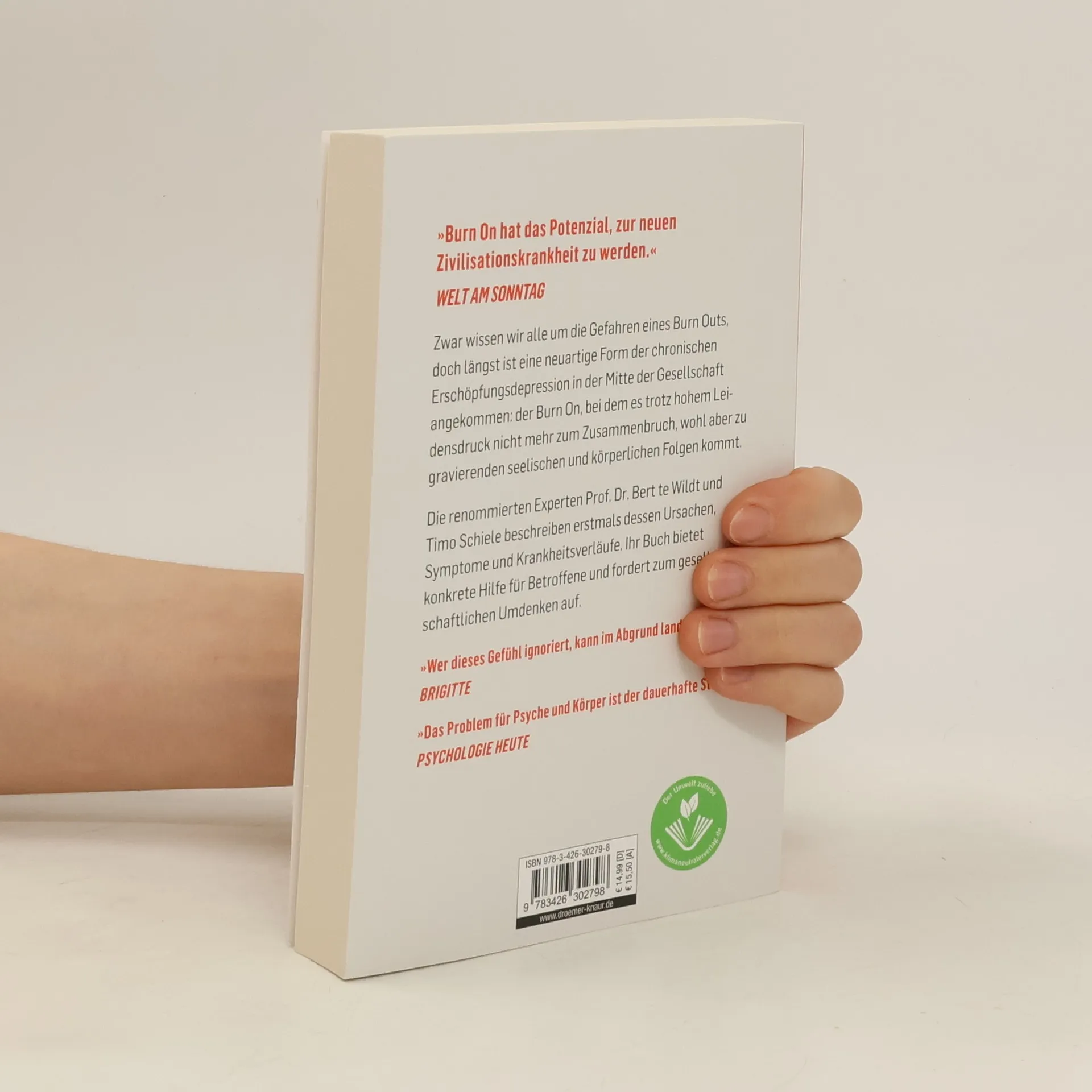 »Burn On hat das Potenzial, zur neuen Zivilisationskrankheit zu werden.« WELT AM SONNTAG Ein Leiden, über das noch niemand spricht Ein gesellschaftlicher Weckruf Direkte Hilfe für alle Betroffenen Zwar wissen wir alle um die Gefahren eines Burn Outs, doch grassiert längst eine neuartige Störung, deren negative Konsequenzen häufig unerkannt bleiben: der Burn On . Während uns diese chronische Erschöpfungs-Depression immer weiter »funktionieren« lässt, raubt sie uns jegliche Lebensenergie. Die renommierten Experten Prof. Dr. Bert te Wildt und Timo Schiele beschreiben in ihrem Psychologie-Ratgeber erstmals das Burn-On-Syndrom, bei dem es trotz hohen Leidensdrucks nicht mehr zum Zusammenbruch, wohl aber zu gravierenden seelischen und körperlichen Folgen kommt. Ihr Buch bietet konkrete Hilfe für Betroffene und ist ein gesellschaftlich dringend notwendiger Weckruf . »Burn On ist noch gefährlicher als Burn Out.« BILD »Wer dieses Gefühl ignoriert, kann im Abgrund landen.« BRIGITTE »Das Problem für Psyche und Körper ist der dauerhafte Stress.« PSYCHOLOGIE HEUTE »Permanent gestresst und erschöpft zu sein, gehört längst zum guten Ton. Das geschäftige Ausgebranntsein ist zur allgemeinen Betriebstemperatur geworden.« Prof. Dr. med. Bert te Wildt und Timo Schiele