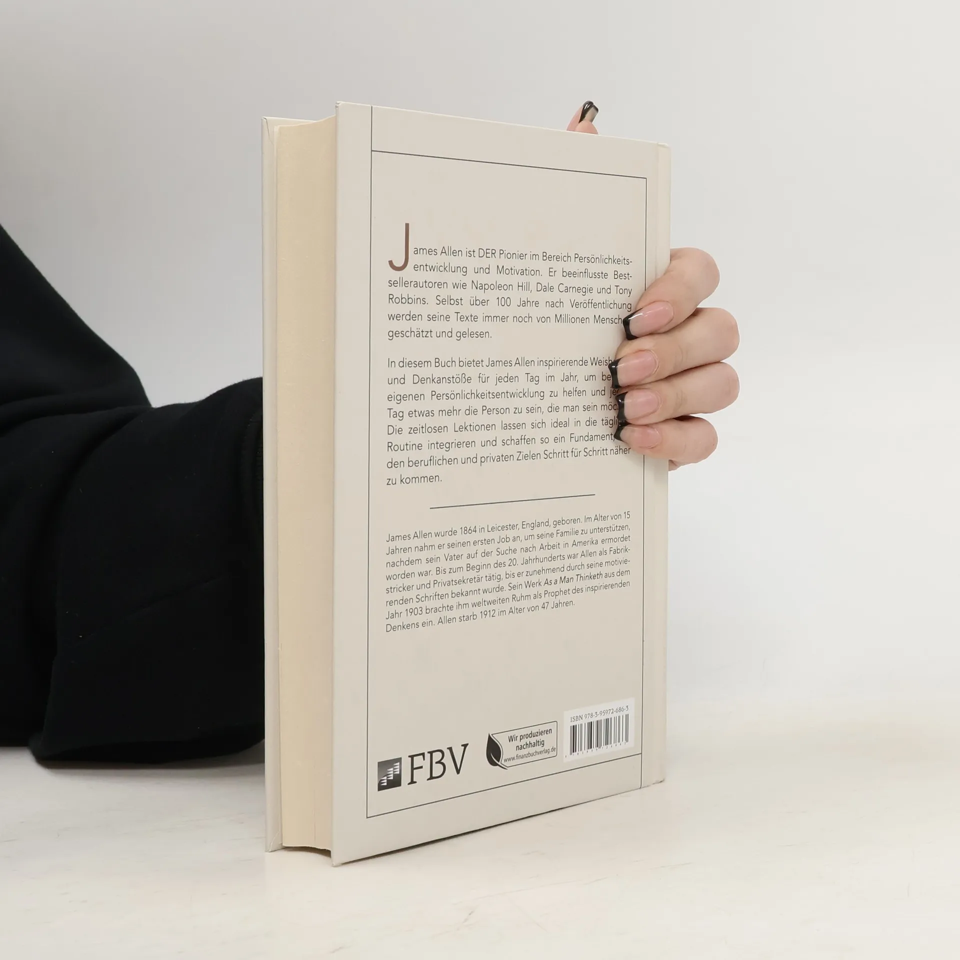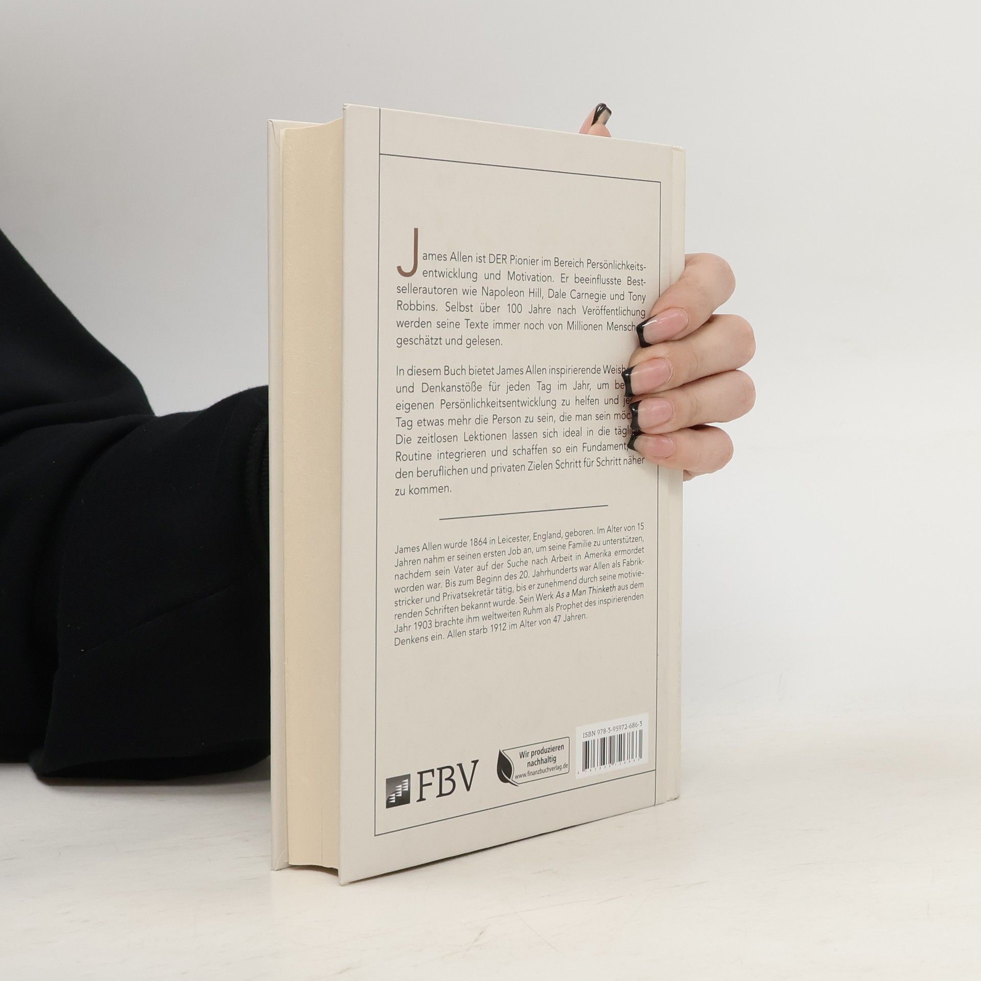 James Allen ist DER Pionier im Bereich Persönlichkeitsentwicklung und Motivation. Er beeinflusste Bestsellerautoren wie Napoleon Hill, Dale Carnegie und Tony Robbins. Selbst über 100 Jahre nach Veröffentlichung werden seine Texte immer noch von Millionen Menschen geschätzt und gelesen. In diesem Buch bietet James Allen inspirierende Weisheiten und Denkanstöße für jeden Tag im Jahr, um bei der eigenen Persönlichkeitsentwicklung zu helfen und jeden Tag etwas mehr die Person zu sein, die man sein möchte. Die zeitlosen Lektionen lassen sich ideal in die tägliche Routine integrieren und schaffen so ein Fundament, um den beruflichen und privaten Zielen Schritt für Schritt näher zu kommen.