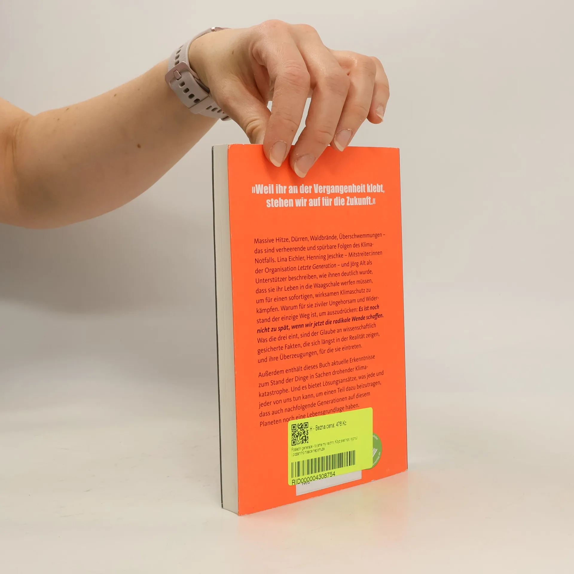 Lina Eichler, Henning Jeschke und Unterstützer Jörg Alt schildern in ihrem Buch, wie sie für sofortigen und wirksamen Klimaschutz kämpfen müssen. Sie betonen, dass ziviler Ungehorsam und Widerstand der einzige Weg sind, um zu zeigen, dass es noch nicht zu spät ist, die radikale Wende zu schaffen. Angesichts massiver Hitze, Dürren, Waldbrände und Überschwemmungen als direkte Folgen des Klimanotfalls wird deutlich, dass ein Weiter-so nicht möglich ist. Viele Menschen sind jedoch überfordert von den Krisen und neigen dazu, die drohende Klimakatastrophe zu verdrängen. Die Autor*innen reflektieren über die Motivation von Umweltaktivist*innen, die behaupten, wir seien „die letzte Generation“, die die Katastrophe abwenden kann, und deren Aktionen den Alltag stören. Eichlers und Jeschkes Engagement begann mit einem Hungerstreik während der Bundestagswahl 2021, um ein Gespräch mit den Kanzlerkandidat*innen zu erzwingen. Nach 27 Tagen sicherte Olaf Scholz den Hungerstreikenden ein Gespräch zu. Jörg Alt, der durch den Hungerstreik auf die Aktivisten aufmerksam wurde, wurde selbst zum Klima-Aktivisten. Gemeinsam glauben sie an wissenschaftlich gesicherte Fakten und setzen sich für Lösungen ein, die jeder umsetzen kann, um zukünftigen Generationen eine Lebensgrundlage zu sichern.