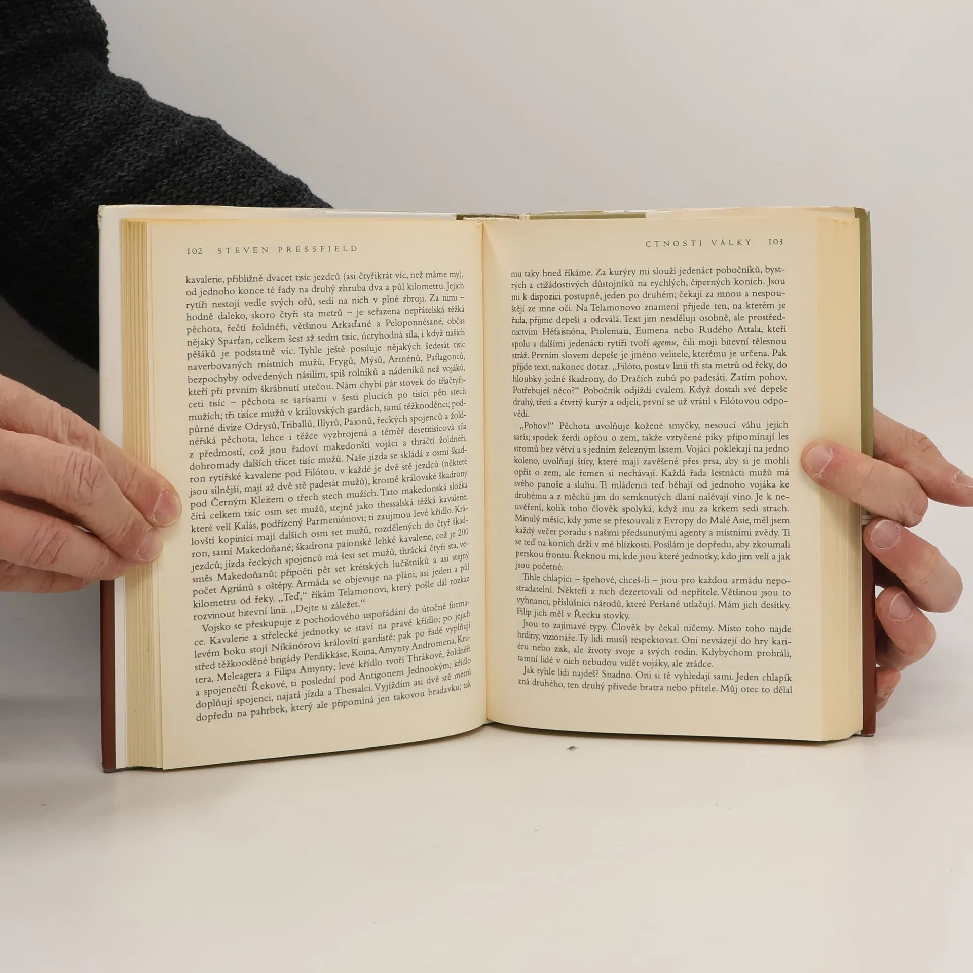 Románem „Ctnosti války“ se americký autor Steven Pressfield vrací do světa antiky, který zpřítomnil modernímu čtenáři svými mezinárodně oceňovanými bestsellery „Ohnivá brána“ a „Souboj s bohy“. (Oba tituly vydalo v českém překladu nakladatelství BBart, stejně jako „Poslední z Amazonek“, román situovaný na pomezí mytologie.) Kniha, v níž Pressfield beletristicky zpracovává život a epochální tažení Alexandra Makedonského proti Persii, je psána s historickou věrností, ale zároveň podává vzrušující popis bitevních scén a poutavé úvahy životopisného rázu.