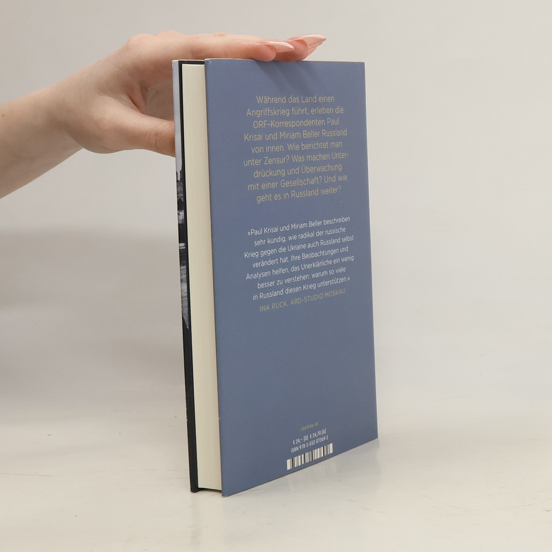 Die ORF-Korrespondent: innen Paul Krisai und Miriam Beller über das Leben in Russland während des Angriffskrieges Seit dem Morgen des 24. Februar 2022 ist nichts mehr wie zuvor: An diesem Tag erklärt Wladimir Putin der Ukraine den Krieg und verbietet kurz darauf per Gesetz jegliche Kritik an der „militärischen Spezialoperation“. Paul Krisai und Miriam Beller setzen trotz der Zensurmaßnahmen ihre Berichterstattung aus Moskau fort. Sie interviewen inhaftierte Oppositionspolitiker per Gefängnispost, sprechen mit gestrandeten ukrainischen Flüchtlingen, reisen Tausende Kilometer durch Russland, Georgien, Belarus und Kasachstan, um zu verstehen, wie grundlegend der Krieg das Land und seine Nachbarschaft verändert. Wie wirken sich die Sanktionen des Westens aus? Was machen Unterdrückung und Überwachung mit einer Gesellschaft? Und wie berichtet man unter Zensur? Krisai und Beller erzählen vom Leben in einem Aggressorstaat, der zur Bedrohung Europas geworden ist.