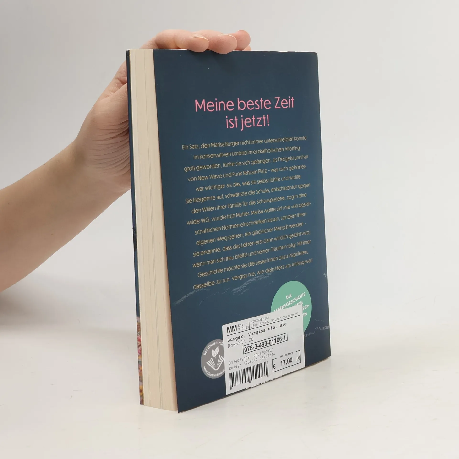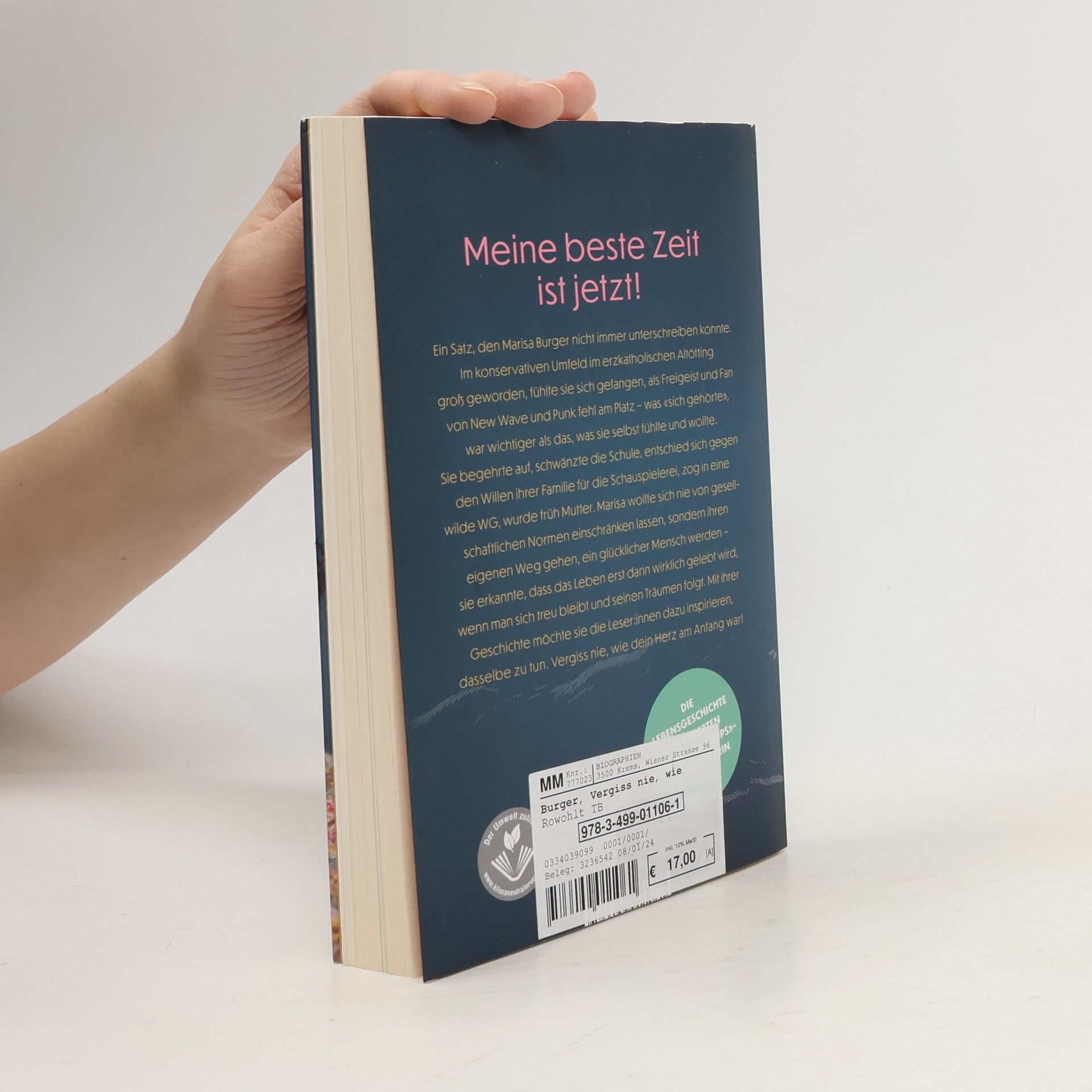 Folge ich den gesellschaftlichen Normen oder habe ich den Mut auszubrechen, um das zu tun, was mich glücklich macht?  Diese Frage stellte sich die beliebte «Die Rosenheim-Cops»-Schauspielerin Marisa Burger Zeit ihres Lebens und entschied sich (fast) jedes Mal für ihren Weg – weil sie tief im Inneren spürte, dass es richtig für sie war.  Als Jugendliche liebte sie New Wave und Punk, entfloh dem erzkatholischen Altötting und ihrem eher konservativen Umfeld, entschloss sich gegen den Willen ihrer Familie für eine künstlerische Laufbahn, bekam mit Anfang 20 ihre Tochter, lebte in einer wilden WG. Sie ist Musikerin, Sportskanone, Kunstliebhaberin und Stehaufmännchen und - Diese Einstellung will sie in ihrem Buch weitergeben und dazu ermutigen, den eigenen Wünschen und Träumen zu folgen.
