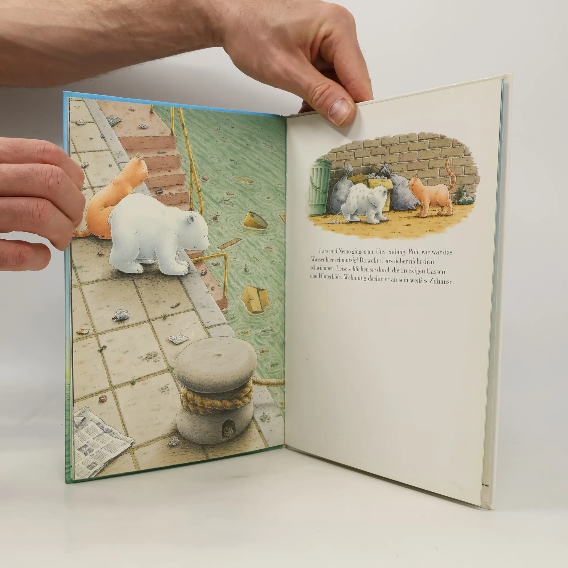 Lars, der kleine Eisbär, geht auf eine ungewollte Reise. Als er sich fröhlich im Meer tummelt, wird er mit einem Fischernetz auf ein Schiff gehievt. Dort kann er sich befreien und lernt Nemo, eine rote Schiffskatze, kennen. Sein neuer Freund weiß einen Weg, wie Lars wieder zu seinen Eltern am Nordpol zurückkehren kann.