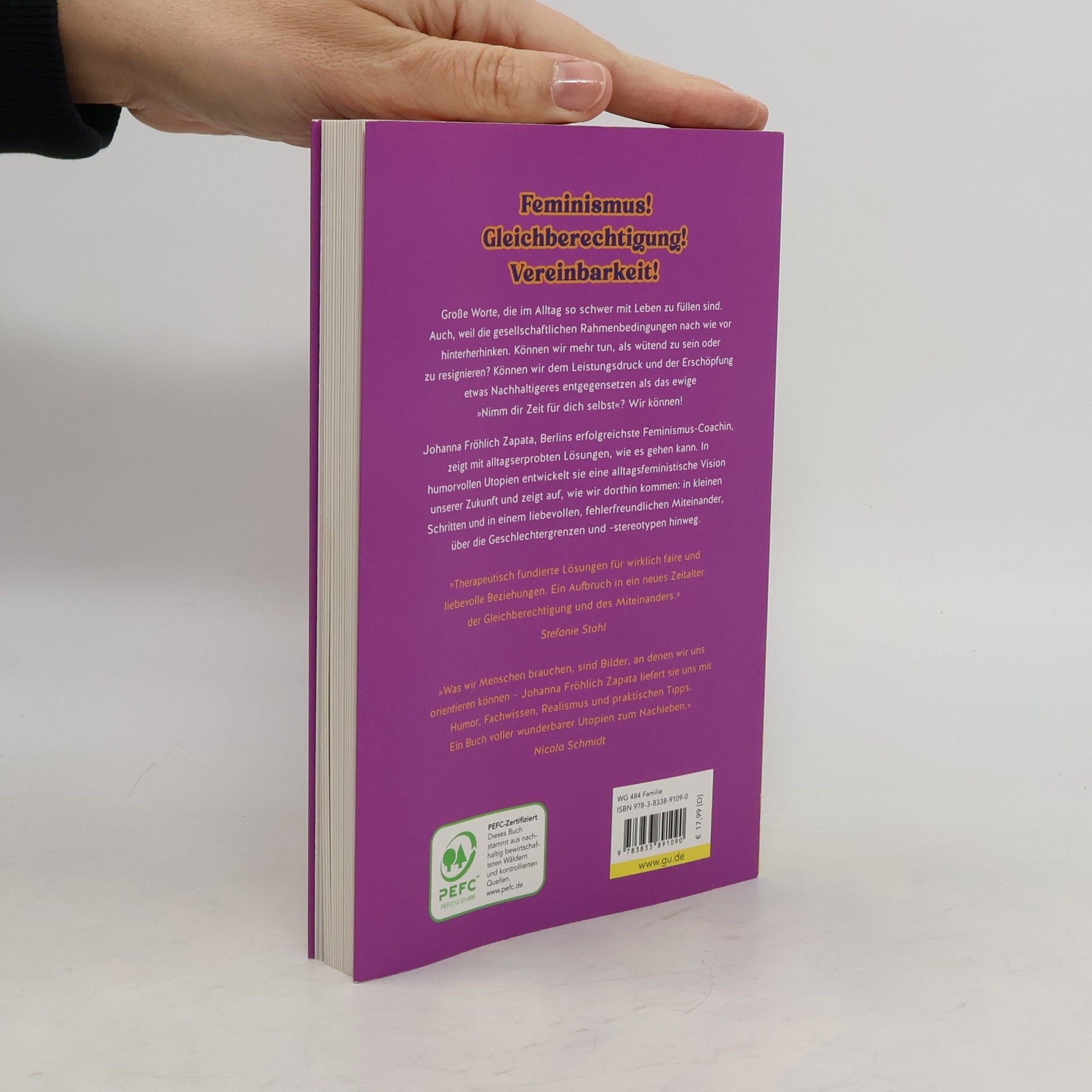 Feminismus! Gleichberechtigung! Vereinbarkeit! Große Worte, die im Alltag so schwer mit Leben zu füllen sind. Auch, weil die gesellschaftlichen Rahmenbedingungen nach wie vor hinterherhinken. Können wir mehr tun, als wütend zu sein oder zu resignieren? Können wir dem Leistungsdruck und der Erschöpfung etwas Nachhaltigeres entgegensetzen als das ewige »Nimm dir Zeit für dich selbst«? Wir können! Johanna Fröhlich Zapata, Berlins erfolgreichste Feminismus-Coachin, zeigt, wie es gehen kann: Mit alltagserprobten Lösungen für anhaltende Entlastung Fehlerfreundlichkeit und ehrlichem Austausch auf Augenhöhe einer liebevollen Haltung statt wütender Vorwürfe In humorvollen Utopien entwickelt die Alltagsfeministin eine Vision davon, wie unser Leben in Zukunft aussehen kann, und sie zeigt auf, wie wir dorthin kommen: in kleinen Schritten und gemeinsam, über die Geschlechtergrenzen und -stereotypen hinweg. Dieses Buch ist für dich wenn … du wissen willst, wie sich Gleichberechtigung im Alltag leben lässt du das Gefühl hast, Feminismus ist nur graue Theorie du erschöpft bist vom Management des Familienalltags die Vereinbarkeit von Job und Familie ein Ding der Unmöglichkeit scheint du mehr über die strukturellen Zusammenhänge erfahren willst, die systematisch zu Überforderung von jungen Familien und Paaren führen du nicht streiten willst, sondern einen liebevollen Austausch auf Augenhöhe anstrebst du gern zusammen mit deinem Partner/deiner Partnerin neue Wege gehen und dich auf die Suche nach Lösungen machen willst, die für euch beide passen Ein Buch für Frauen*, Mütter, Väter und Männer*. Weil alle ein Recht auf einen glücklichen Alltag haben.