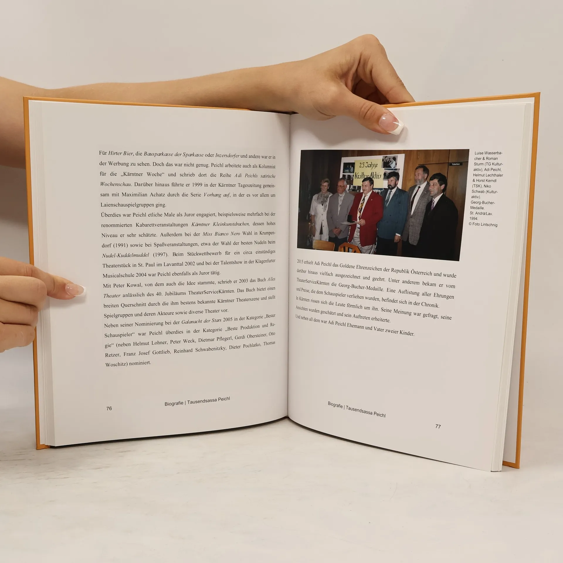 Er war Schauspieler, Regisseur und wichtiger Förderer des Laientheaters: Adi (Adolf) Peichl. 1945 in Wien geboren wurde er vor allem durch seine Rolle als Hausdiener Malec in der TV-Serie „Ein Schloss am Wörthersee“ bekannt. Vorher hatte er Schriftsetzer gelernt, war mit einer Wanderbühne durch Österreich und Deutschland getourt und am Stadttheater Baden bei Wien engagiert. 1984 ging er nach Klagenfurt, spielte bis 1999 am Stadttheater, bis 2018 auch bei den Komödienspielen Porcia und sogar bis 2020 führte er Regie bei vielen, vielen freien Produktionen nicht nur in Kärnten ‒ Villacher Fasching, Clagenfurter Stadtgerücht, Sommerspiele Eberndorf, Friesacher Burghofspiele, Spektakel Weißenstein und KULT Krumpendorf sind nur einige wenige Namen. Nach Adi Peichls Tod im Dezember 2020 erhielt der Verein TheaterServiceKärnten seinen beruflichen Nachlass: fünfzig Kisten voller Briefe, Notizen, Zeitungsartikel, Plakate, Ton- und Videomaterial, unzählige von Peichl bearbeitete Theaterstücke und etliche Requisiten. Sie waren die Basis für diese Biografie, die den Werdegang des mehrfach ausgezeichneten »Theaternarren« schildert und seine Leistungen detailliert aufführt. Theresa Thum hat dazu sehr persönliche Stimmen eingefangen, aus der Familie, von Mitmenschen, Wegbegleiter*innen ...