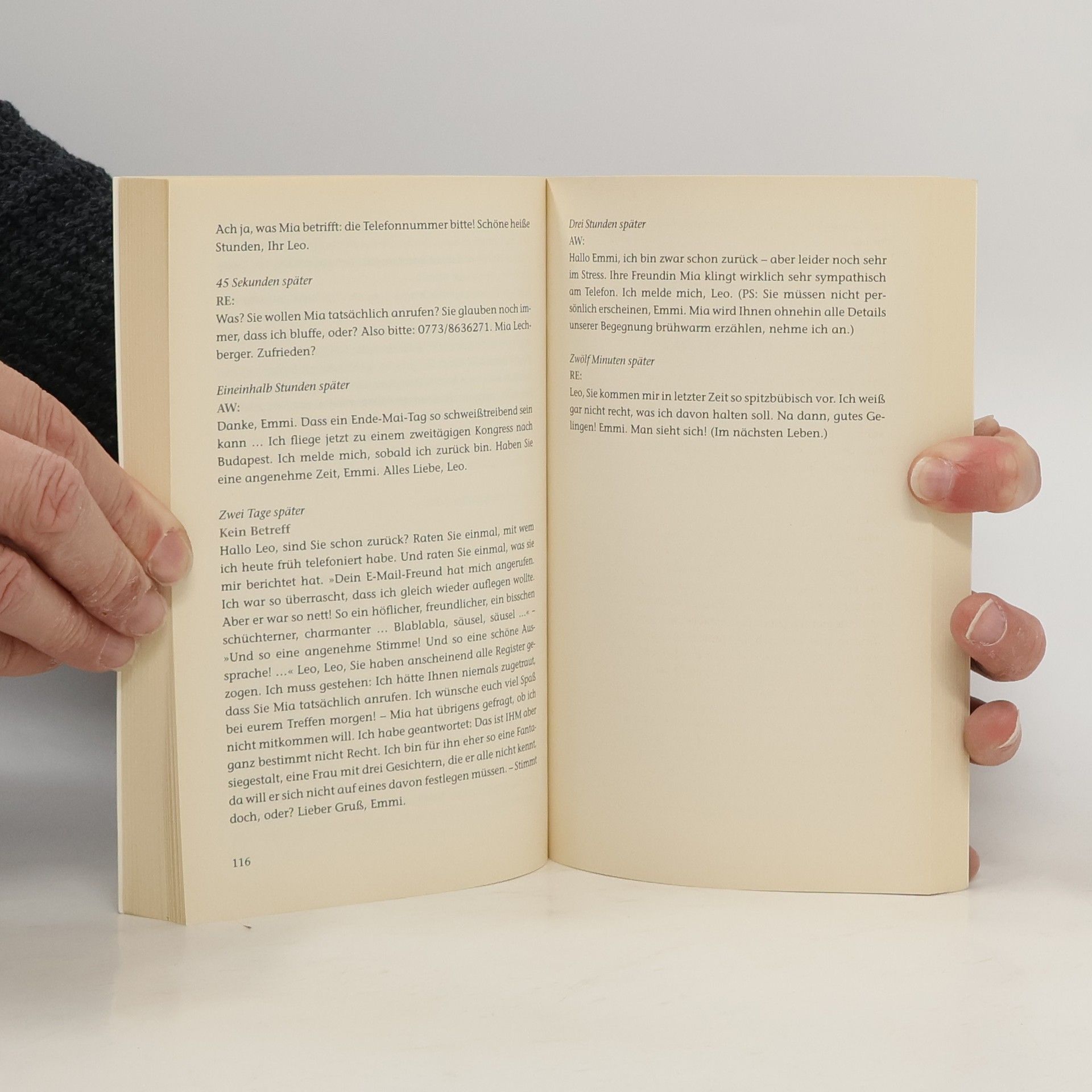 Emmi Rothner möchte per E-Mail ihr Abo der Zeitschrift „Like“ kündigen, doch durch einen Tippfehler landen ihre Nachrichten bei Leo Leike. Als Emmi wieder und wieder E-Mails an die falsche Adresse schickt, klärt Leo sie über den Fehler auf. Es beginnt ein außergewöhnlicher Briefwechsel, wie man ihn nur mit einem Unbekannten führen kann. Auf einem schmalen Grat zwischen totaler Fremdheit und unverbindlicher Intimität kommen sich die beiden immer näher – bis sie sich der unausweichlichen Frage stellen müssen: Werden die gesendeten, empfangenen und gespeicherten Liebesgefühle einer Begegnung standhalten? Und was, wenn ja?