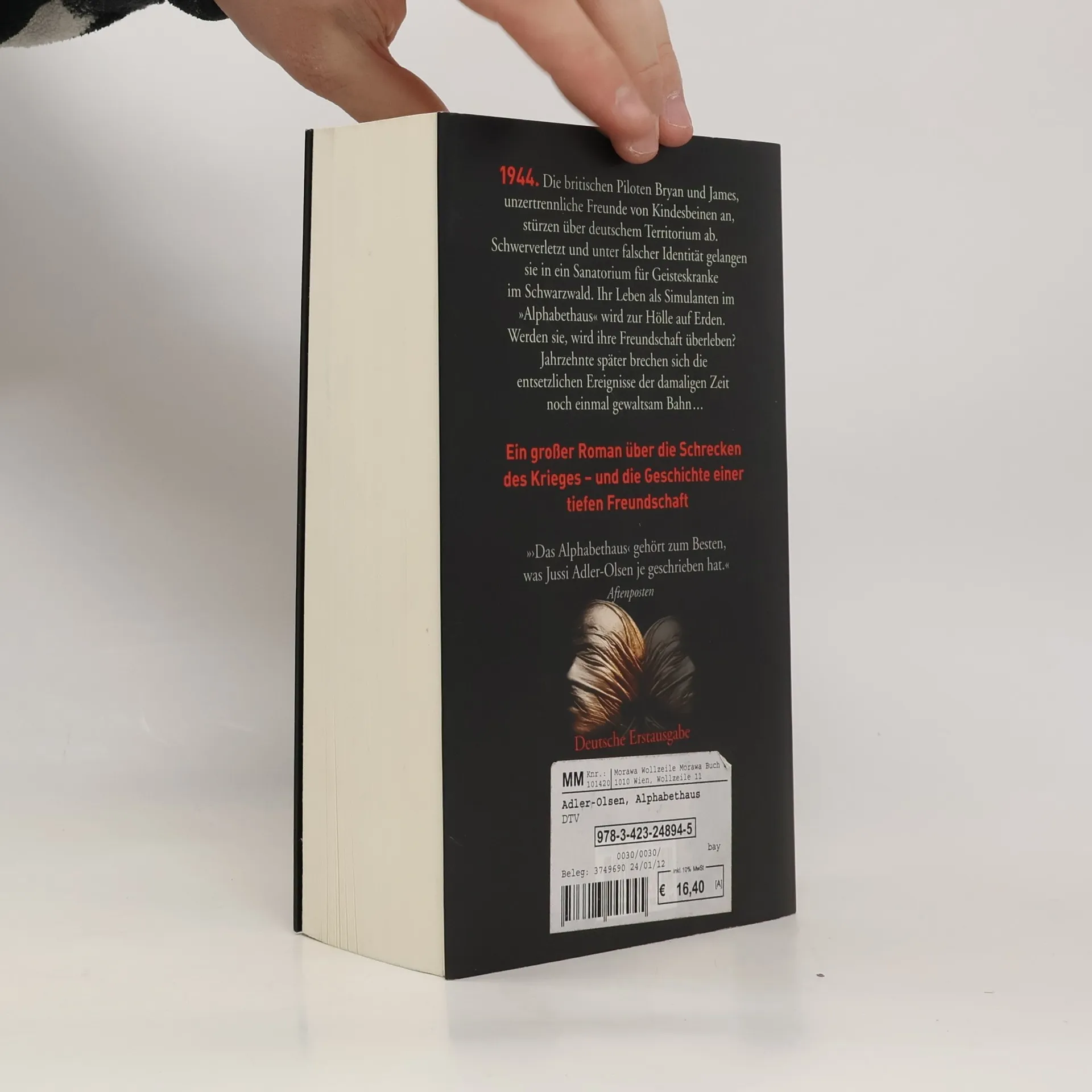 Der internationale Bestseller von Jussi Adler-Olsen Der Absturz zweier britischer Piloten hinter den feindlichen Linien … Ein Krankenhaus im Breisgau, in dem psychisch Kranke als Versuchskaninchen für Psychopharmaka dienen … Die dramatische Suche eines Mannes nach seinem Freund, den er dreißig Jahre zuvor im Stich gelassen hat … »Eine unfassbare Geschichte: die Schrecken des Krieges und das Schicksal psychisch zutiefst beschädigter Patienten einer Nervenheilanstalt auf der einen Seite, die Freundschaft zweier englischer Piloten und die Suche nach einem Verschwundenen auf der anderen, gehört zum Besten, was Jussi Adler-Olsen je geschrieben hat. Wie er das groteske Elend der Patienten einer Nervenklinik als Folge des Krieges schildert, ist anrührend und beklemmend zugleich. Man liest das Buch mit allen Sinnen.« Ingrid Brekke in ‚Aftenposten‘