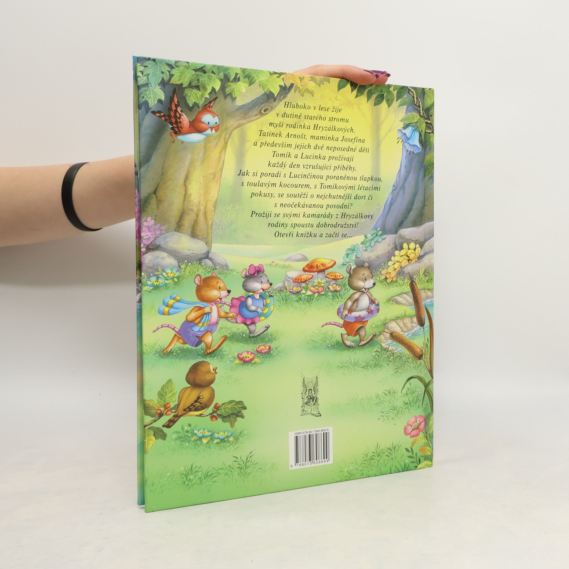 Hluboko v lese žije v dutině starého stromu myší rodinka Hryzálkových - tatínek Arnošt, maminka Josefína a především jejich dvě neposedné děti Tomík a Lucinka. Každý jejich den je plný vzrušujících příběhů a vaše děti je nyní mohou díky této krásně ilustrované knížce prožívat spolu s nimi. Příběhy myší rodinky pro nejmenší