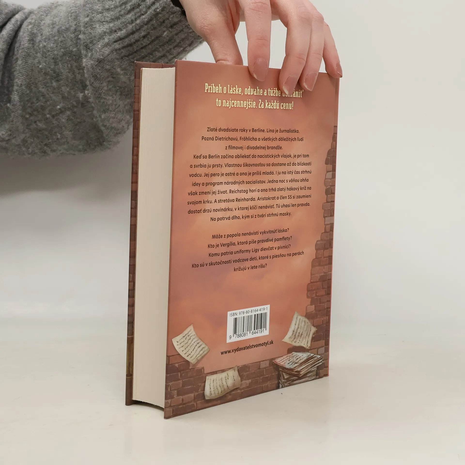 „Rád sa s vami zhováram, Lina. Škoda, že už nežije váš otec. Určite by bol pyšný na to, že mu robíte dobré meno."Namiesto odpovede som sa usmiala, ale v hlave mi kričalo: Nie! To Vergília mu robí dobré meno. Lina skáče, ako píska tvoja strana. Lebo má strach. A dieťa. A milovaného muža. A sestru. A neter. A kopu cudzích detí v pivnici.Príbeh o láske, odvahe a túžbe uchrániť to najcennejšie. Za každú cenu! Zlaté dvadsiate roky v Berlíne. Lina je žurnalistka. Pozná Dietrichovú, Fröhlicha i všetkých dôležitých ľudí z filmovej i divadelnej brandže. Keď sa Berlín začína obliekať do nacistických vlajok, je pri tom a svrbia ju prsty. Vlastnou šikovnosťou sa dostane až do blízkosti vodcu. Jej pero je ostré a ona je príliš mladá. I ju na istý čas strhnú idey a program národných socialistov. Jedna noc s vôňou ohňa však zmení jej život. Reichstag horí a ona trhá zlatý hákový kríž na svojom krku. A stretáva Reinharda. Aristokrat a člen SS si zaumieni dostať drzú novinárku, v ktorej klíči nenávisť. Tú uhasí len pravda. No potrvá dlho, kým si z tvárí strhnú masky.Môže z popola nenávisti vykvitnúť láska? Kto je Vergília, ktorá píše pravdivé pamflety? Komu patria uniformy Ligy dievčat v pivnici? Kto sú v skutočnosti vodcove deti, ktoré s piesňou na perách križujú v lete ríšu?