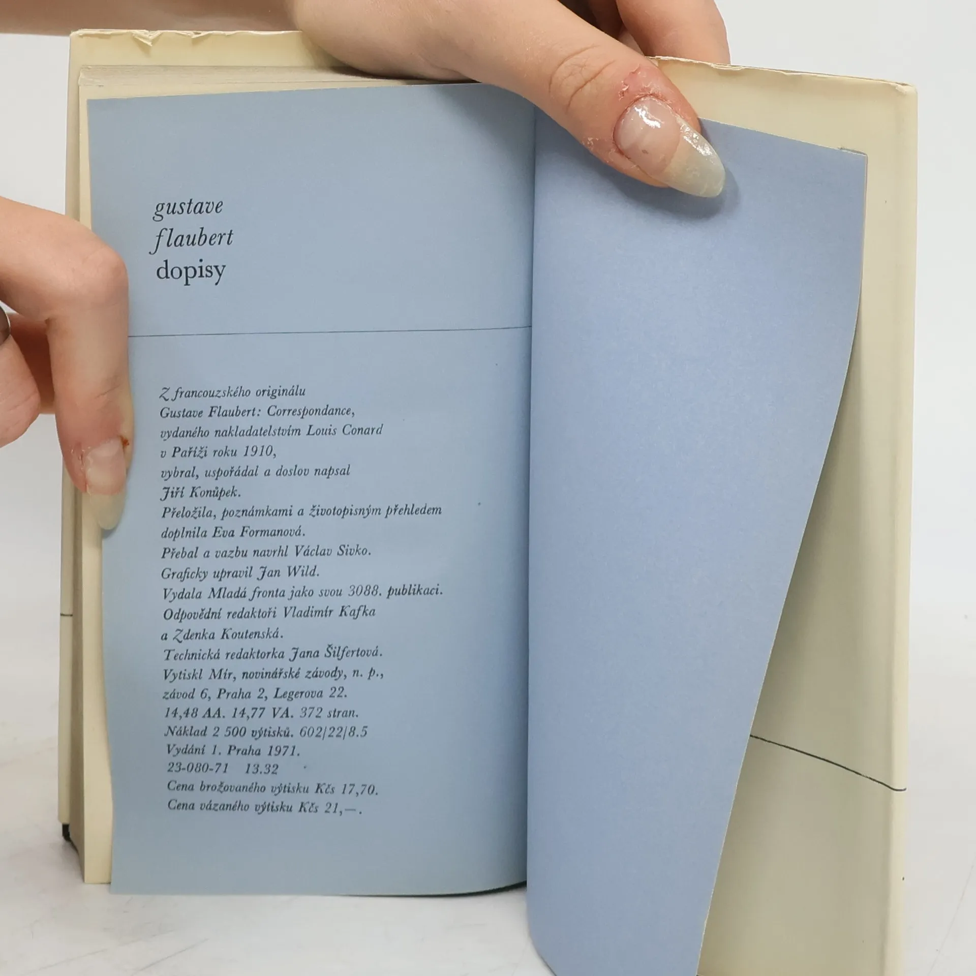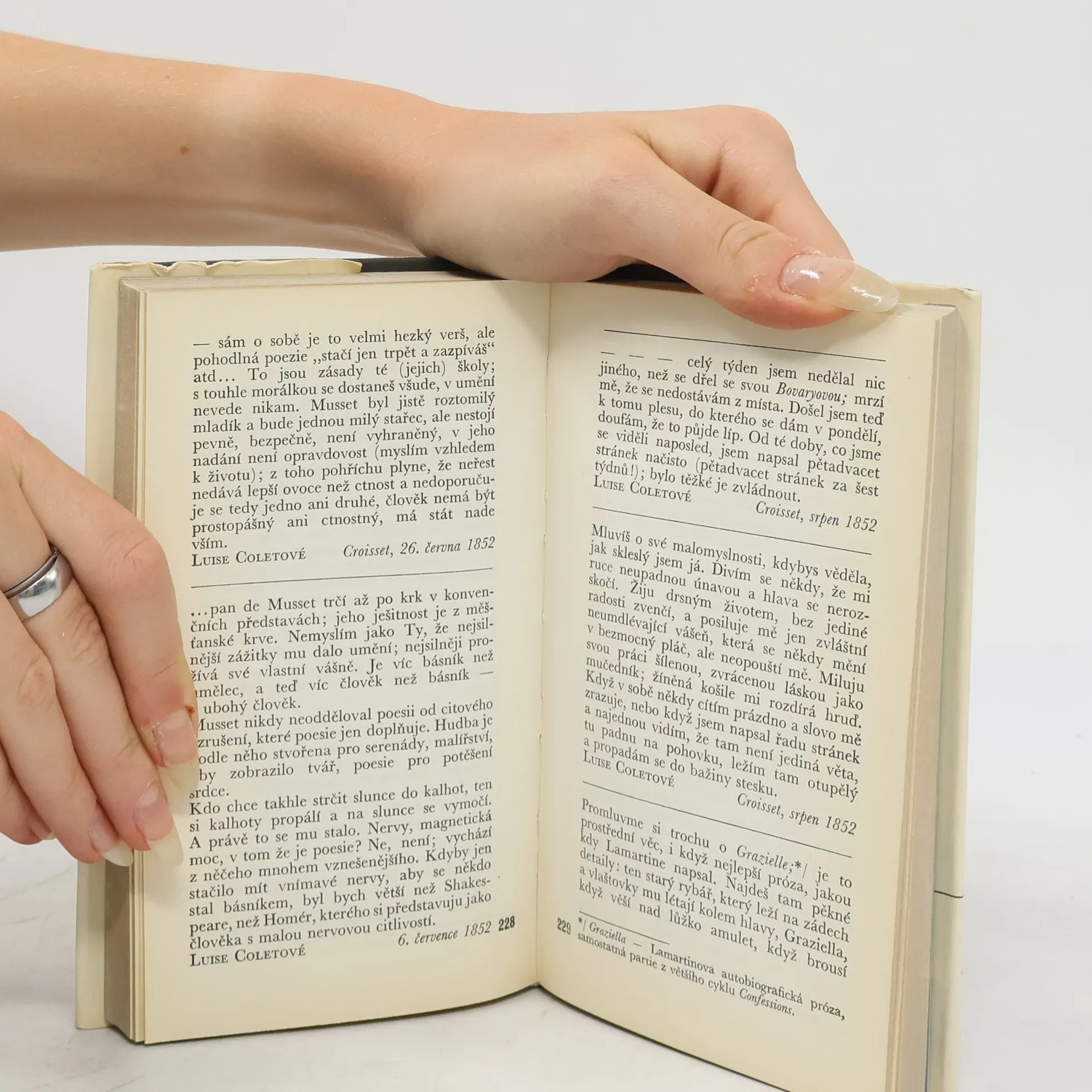Kniha spisovatelových dopisů označená za největší Flaubertův román. Pasáže z listů přátelům, ženám, mistrům literatury — Hugovi, Sandové, Maupassantovi — jsou ve výběru dr. Jiřího Konůpka tématicky utříděny do tří oddílů: Člověk a svět, Současnost a dějiny, Literatura aumění — a tvoří neobyčejně zajímavý celek esejistického charakteru.
