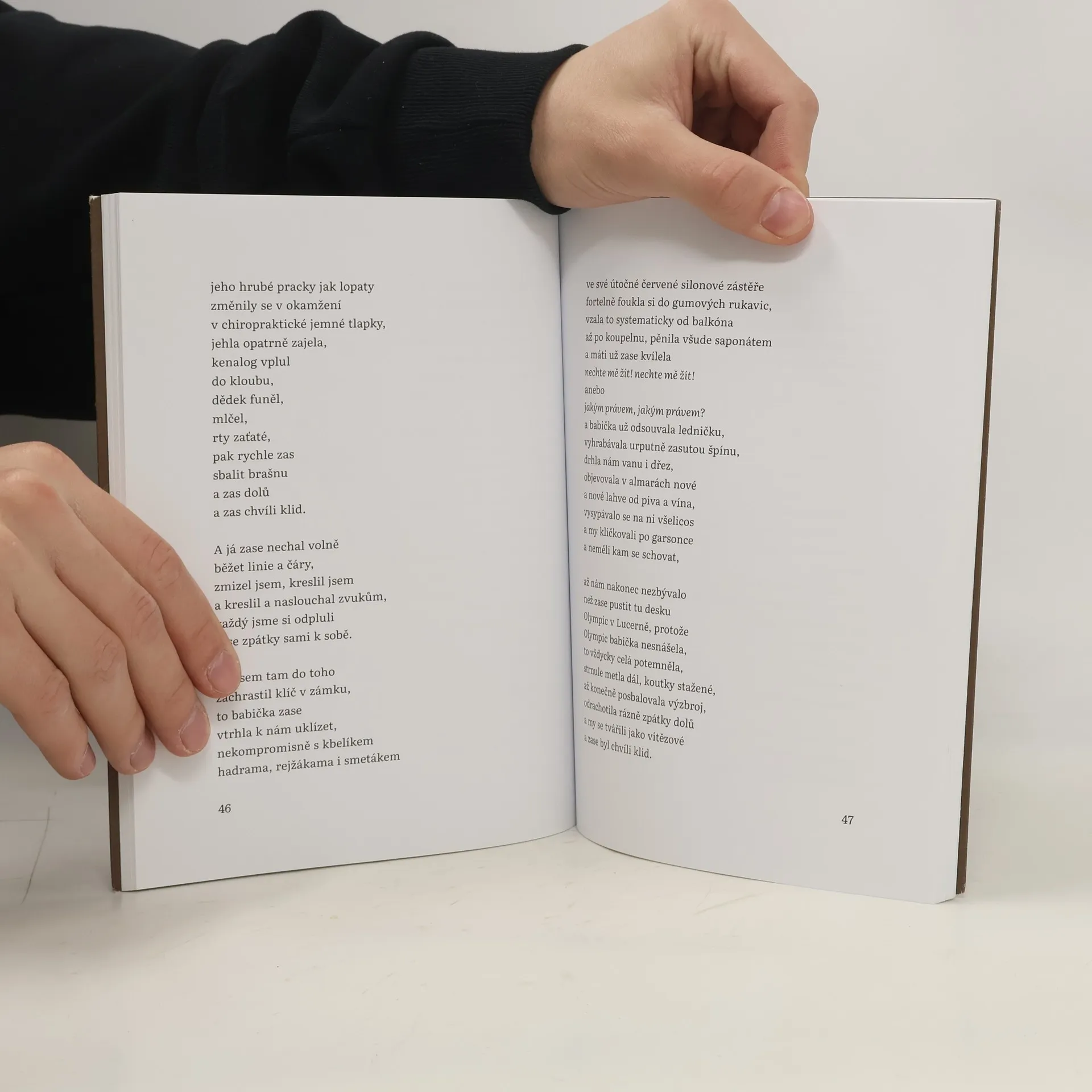 Poetický cyklus Zápisky z garsonky je neskrývaně autobiografický – garsonka, kterou obývá malý chlapec spolu se svou invalidní matkou, je plná knih, gramodesek a matčiných svobodomyslných přátel. Protipól bezpečného, avšak křehkého světa panelákového bytu na libereckém kopci představujemocný, chladný řád v domě prarodičů pod kopcem. Jednoznačný a neproblematický vesmír dítěte se postupem času smršťuje; přichází nevyhnutelný zápas o identitu a životní prostor – zprvu v náznacích, později se vší naléhavostí. Hledání rovnováhy mezi volností a disciplínou, mezi „nahoře" a „dole", mezi vášní a nadhledem a v neposlední řadě i mezi tragédií a groteskou můžeme sledovat jak v jednotlivých drobných příbězích, tak v rovině jazykové. Právě promyšlená práce s jazykem a palčivě prožitými motivy skladbu propojují v hluboký a přitom čtivý celek.