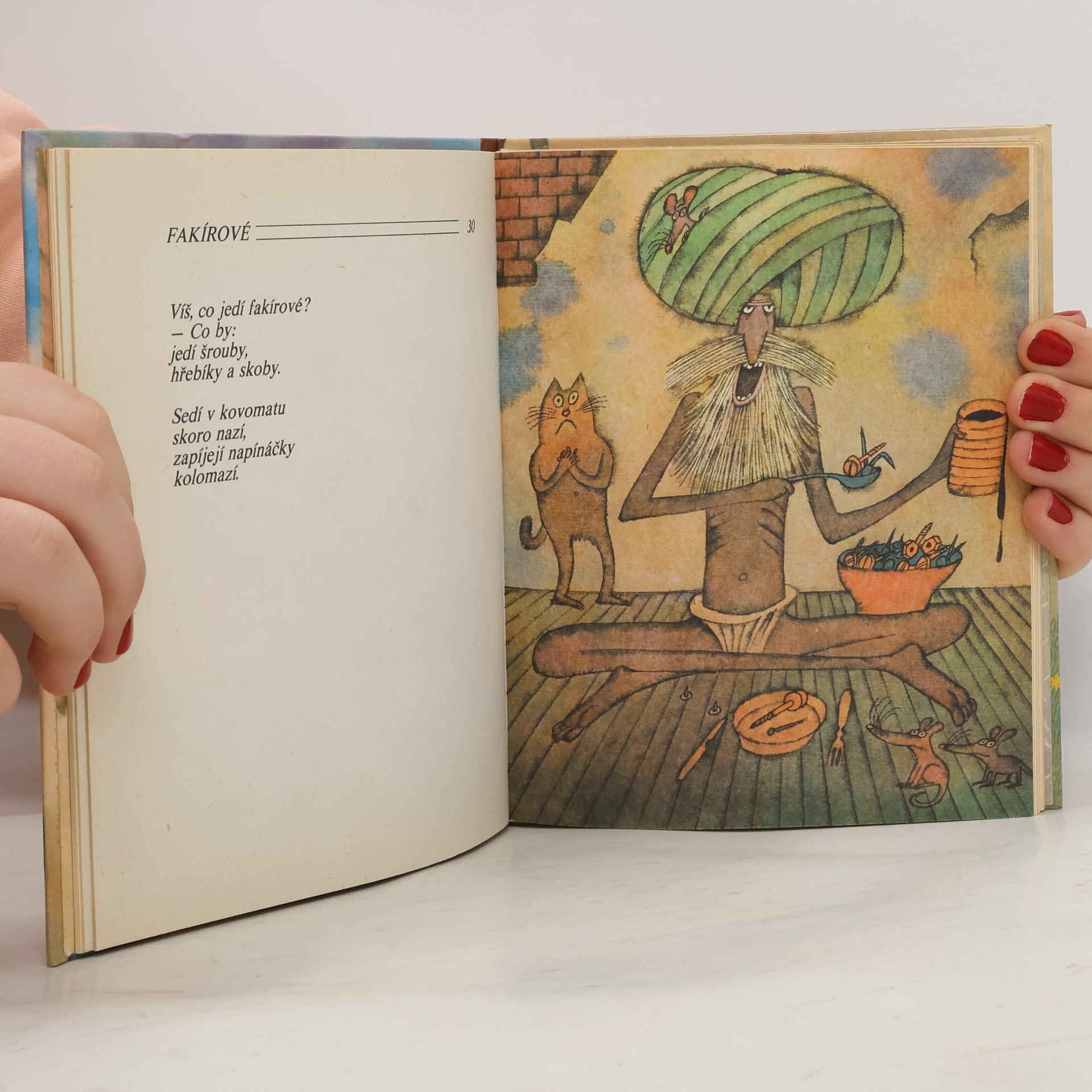 Humorné básně a krátká říkadla, v nichž autor využívá slovní a situační komiku i neobvyklou grafickou podobu básně. Ilustroval Adolf Born. Pro děti od 5 let. ŠKÁDLENÍ Radku, Radku, nenos bradku - v zimě bys měl na ní samou jinovatku! Zkrátka nenos fousy, ty jsou pro morousy.