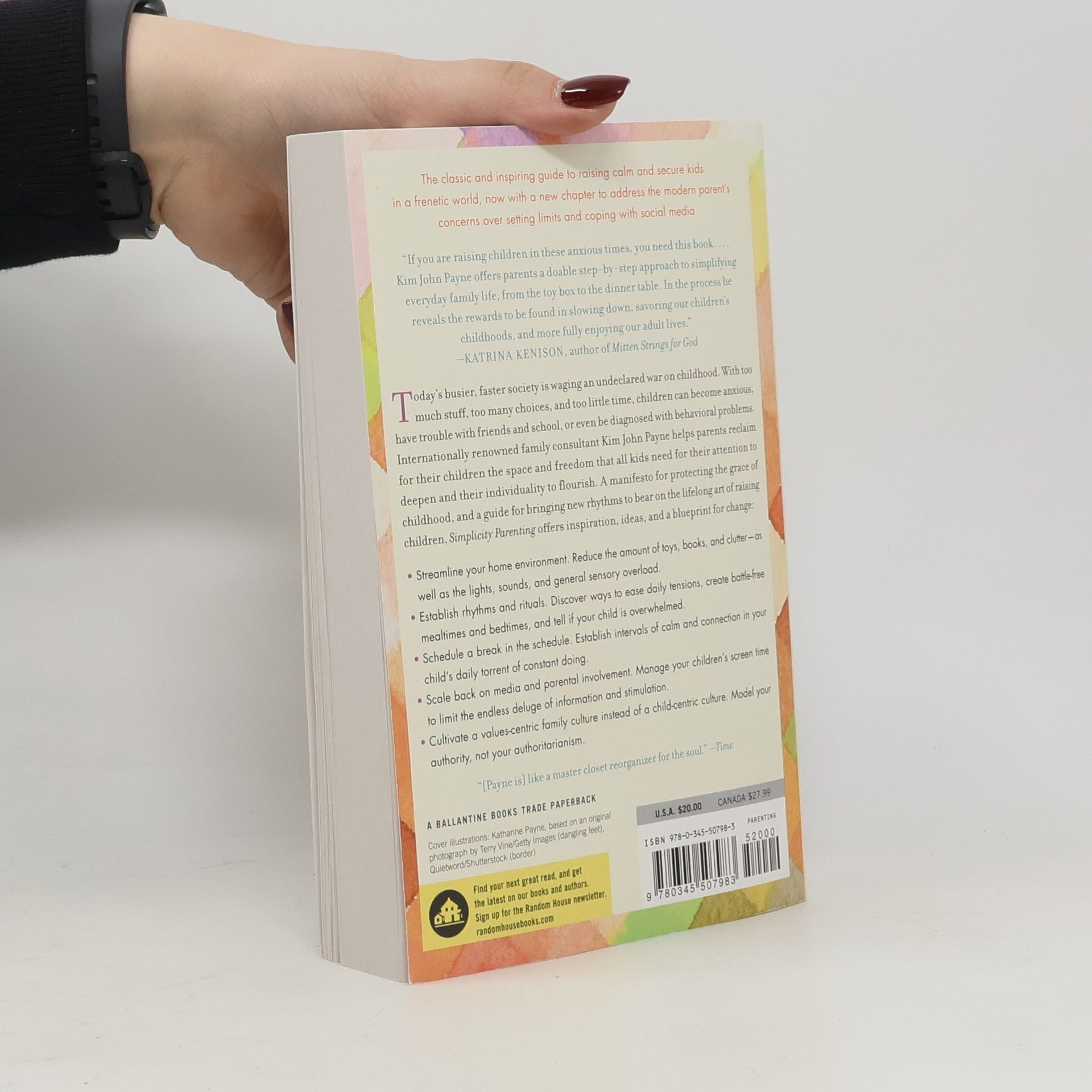 Today’s busier, faster society is waging an undeclared war on childhood. With too much stuff, too many choices, and too little time, children can become anxious, have trouble with friends and school, or even be diagnosed with behavioral problems. Now internationally renowned family consultant Kim John Payne helps parents reclaim for their children the space and freedom that all kids need for their attention to deepen and their individuality to flourish. Simplicity Parenting offers inspiration, ideas, and a blueprint for change: • Streamline your home environment. Reduce the amount of toys, books, and clutter—as well as the lights, sounds, and general sensory overload. • Establish rhythms and rituals. Discover ways to ease daily tensions, create battle-free mealtimes and bedtimes, and tell if your child is overwhelmed. • Schedule a break in the schedule. Establish intervals of calm and connection in your child’s daily torrent of constant doing. • Scale back on media and parental involvement. Manage your children’s “screen time” to limit the endless deluge of information and stimulation. A manifesto for protecting the grace of childhood, Simplicity Parenting is an eloquent guide to bringing new rhythms to bear on the lifelong art of raising children.