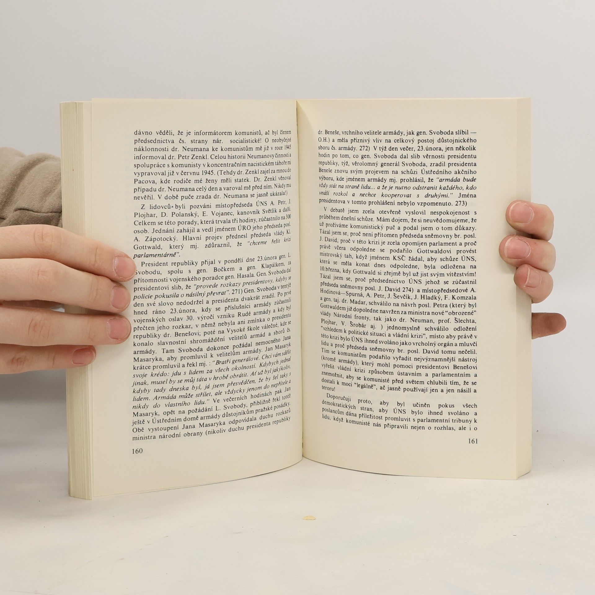 Obsáhlé osobní svědectví o událostech vedoucích k únorovému převratu 1948 vydal bývalý národně socialistický poslanec Ota Hora pod názvem Svědectví o puči (68 Publishers, Toronto, 1978). Hora byl před únorem 1948 členem bezpečnostního výboru parlamentu a shromažďoval informace o vyzbrojování polovojenských organizací KSČ. Mnohokrát varoval, že ozbrojené komunistické složky připravují převrat. Tři roky koaličního politického soužití s komunisty bylo podle Hory obdobím napětí a rostoucího pocitu bezmocnosti. Hlavní potíž byla v tom, že Sovětský svaz a jeho pátá kolona v Československu - KSČ - byly po válce nekritizovatelné, zatímco komunisté mohli volně kritizovat nekomunistické strany i západní státy. ISBN pro soubor: 80-7023-086-X