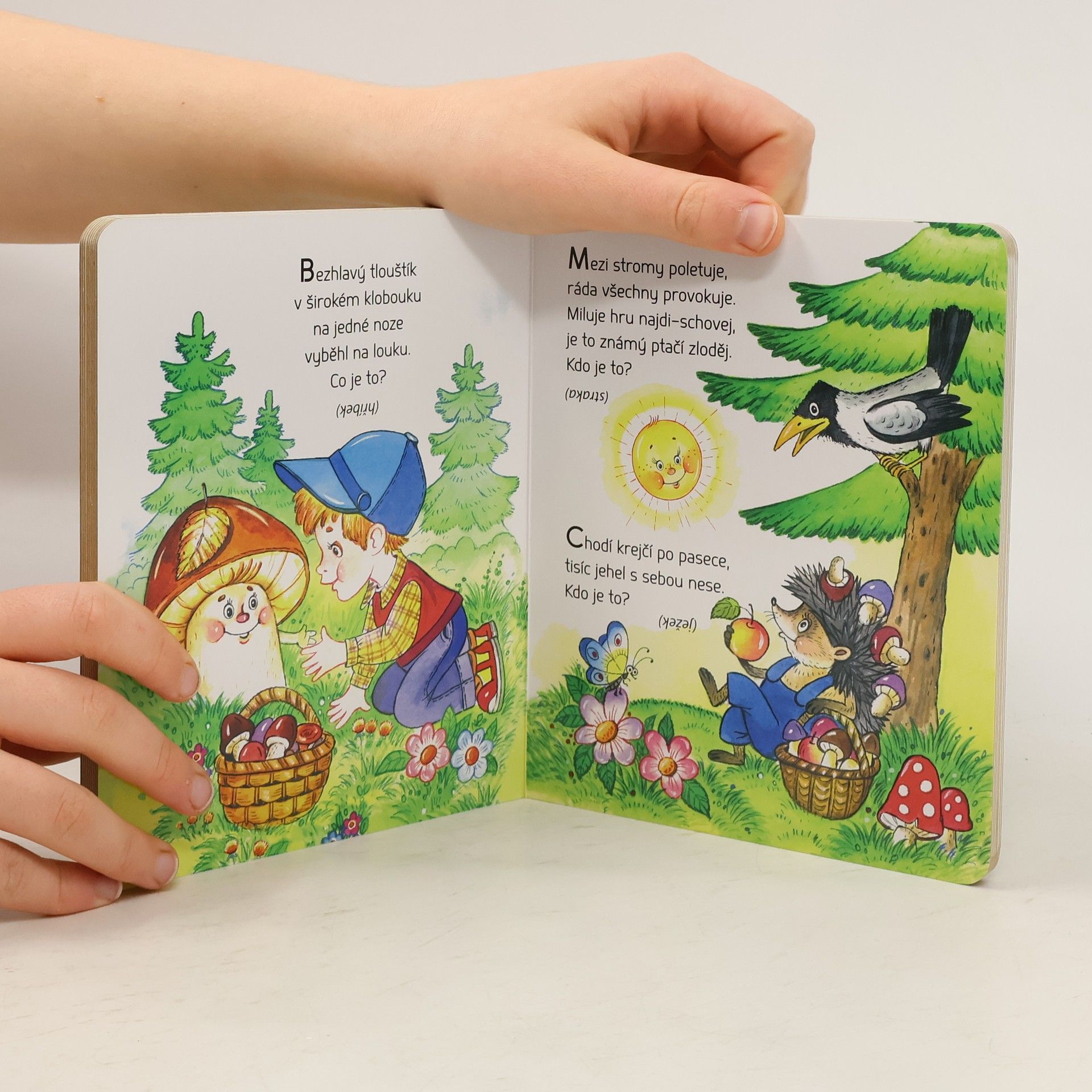 Leporelo plné známých i méně známých hádanek a veselých obrázků. Zkuste hádat se svými dětmi. Kdo neuhodne, nic se neděje. Řešení najde v závorce pod každou hádankou.