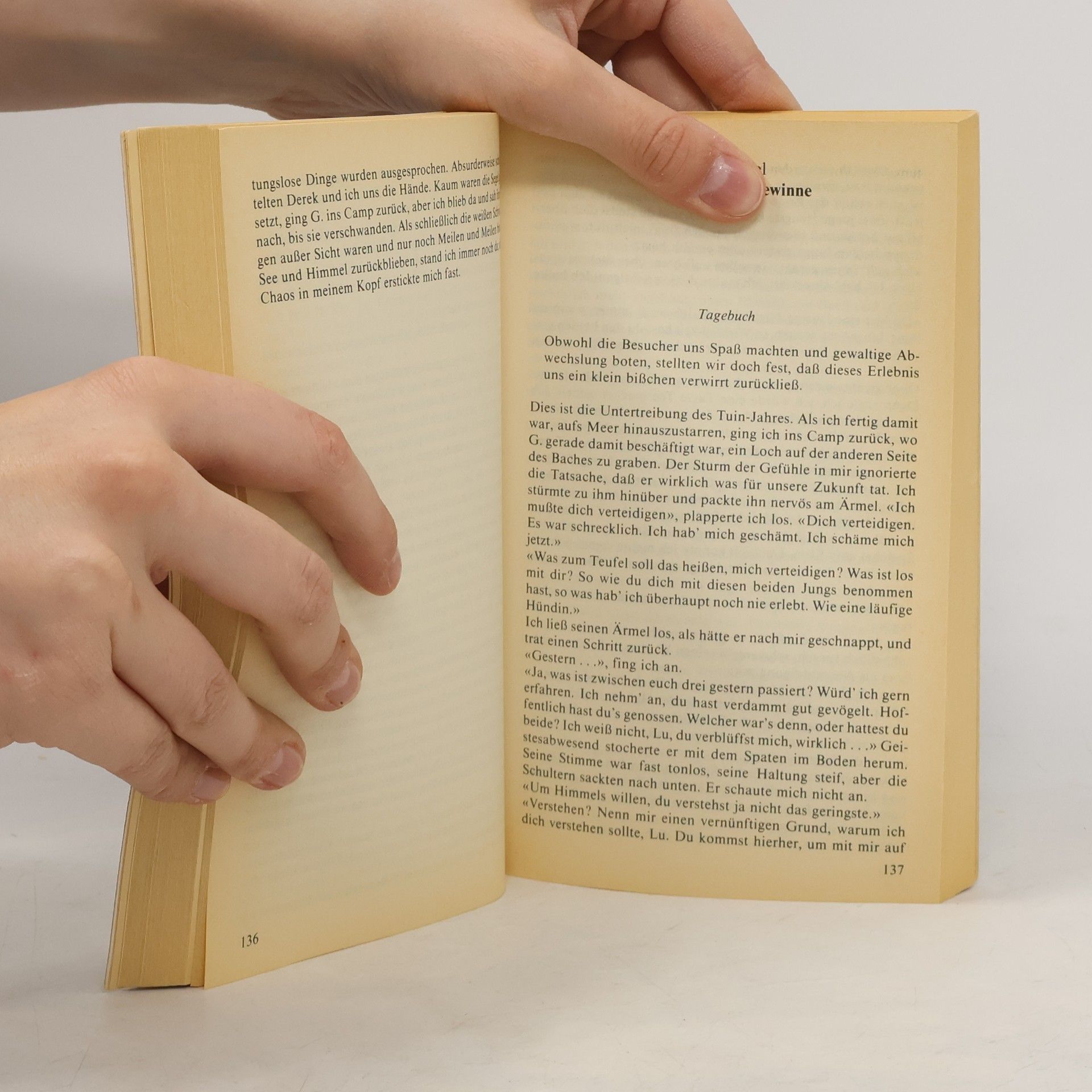 Persönlicher Bericht einer jungen Engländerin, die mit einem älteren Schriftsteller auf einer unbewohnten Insel vor der australischen Küste das Überleben probt.