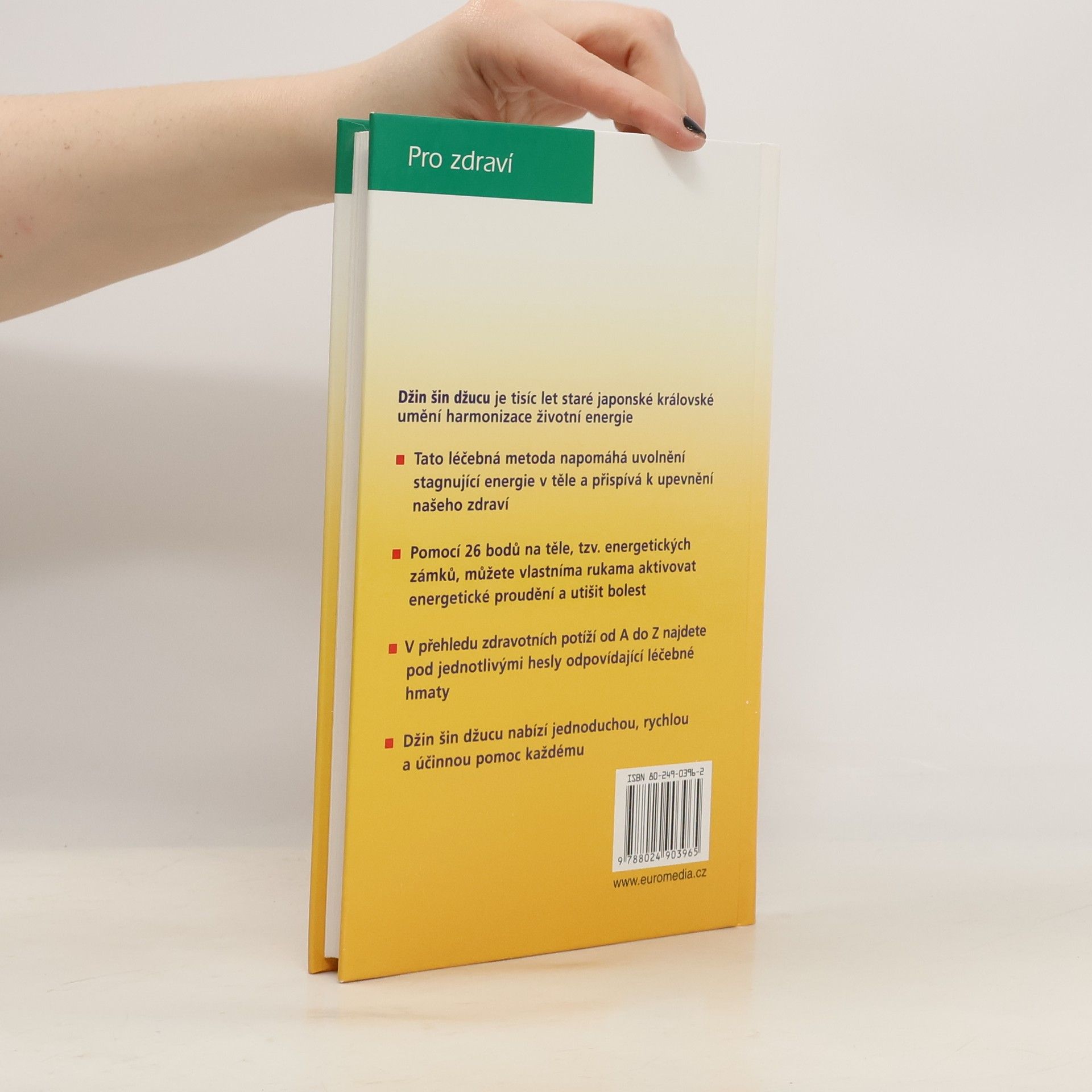 Džin šin džucu je prastaré japonské umění harmonizace životní energie a uvolňování energetických blokád v lidském organismu pomocí rukou. Jednoduchá, rychlá a účinná samoléčebná metoda, při níž se používá držení prstů a krátké hmaty, dokáže utišit bolest.