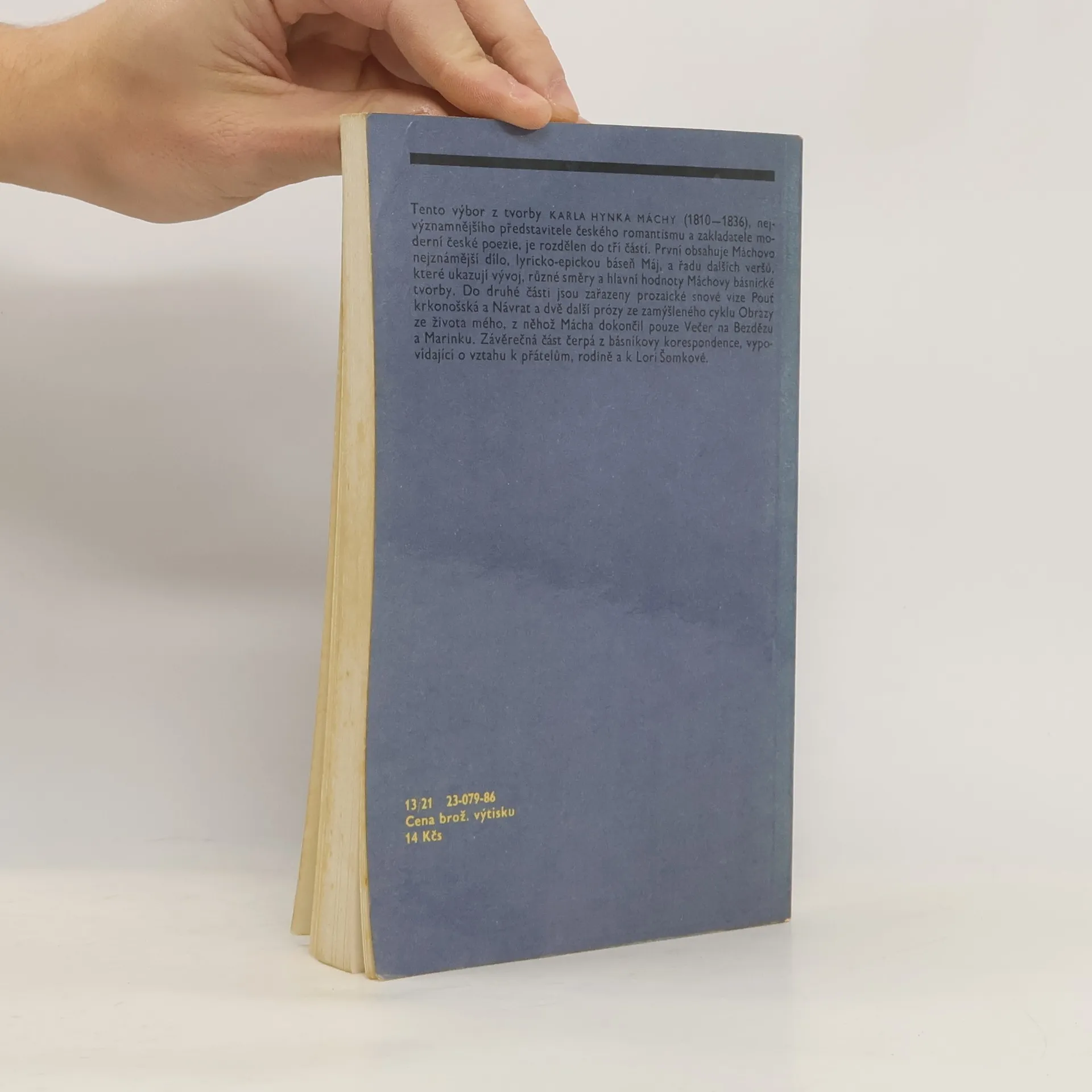 Tento výbor z Máchovo díla, určený především pro školní potřeby, vychází pochopitelně z toho, co je povinnou četbou. Využívá však zároveň možnosti ukázat básníka, prvního a největšího představitele českého literárního romantismu, ve větší šíři a v mnohostrannější podobě.(ediční poznámka z knihy)