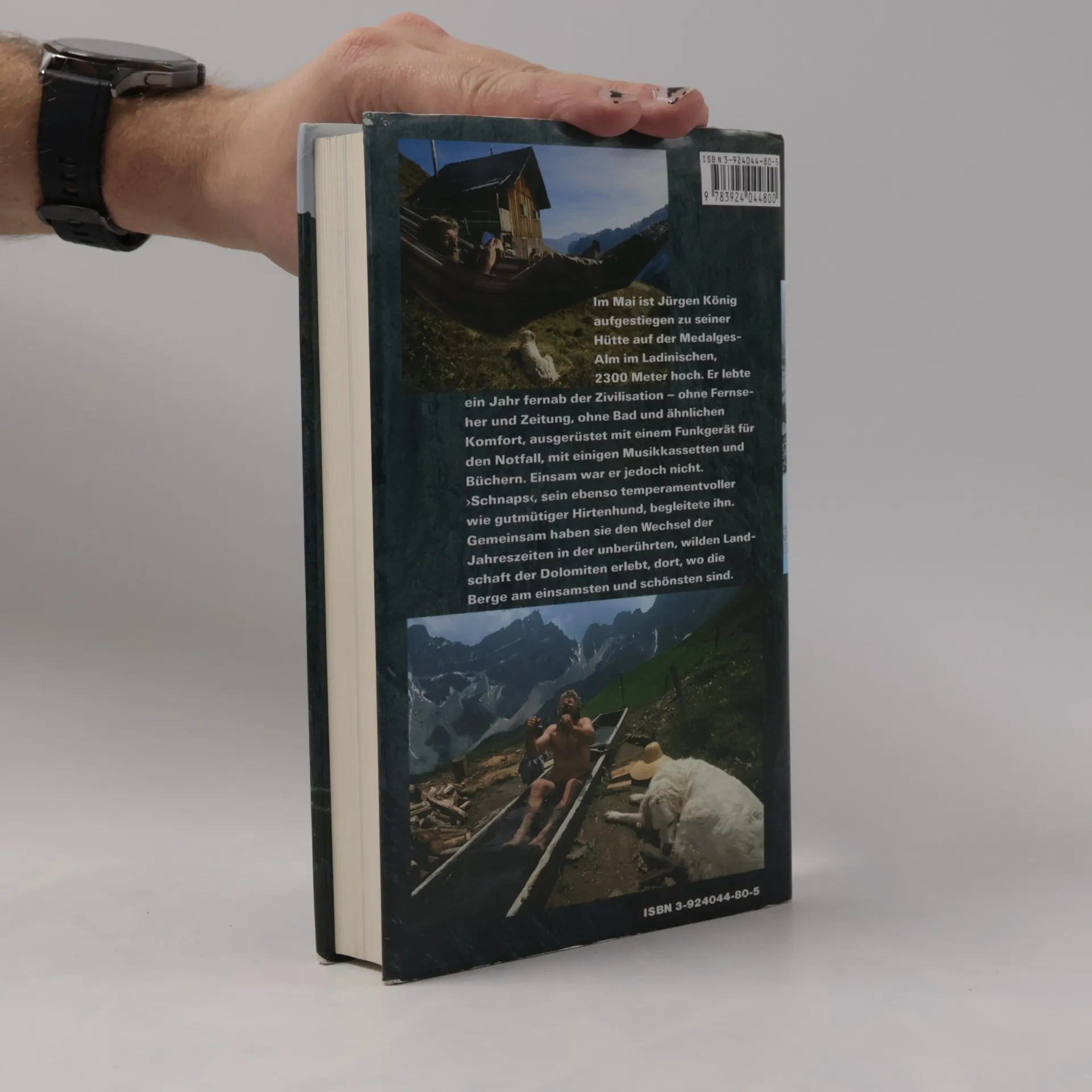 Im Mai ist Jürgen König aufgestiegen zu seiner Hütte auf der Medalges-Alm im Ladinischen, 2300 Meter hoch. Er lebte ein Jahr fernab der Zivilisation - ohne Fernseher und Zeitung, ohne Bad und ähnlichen Komfort, ausgerüstet mit einem Funkgerät für den Notfall, mit einigen Musikkassetten und Büchern. Ganz allein war er jedoch nicht. Bei ihm war 'Schnaps' sein italienischer Hirtenhund.§ Das Buch beschreibt dieses ungewöhnliche Experiment, die Erlebnisse, die Erfahrungen, die Gedanken, die Veränderungen, die ein Mensch an sich selbst beobachtet, der sich für ein Jahr aus der sogenannten Zivilisation verabschiedet hat.