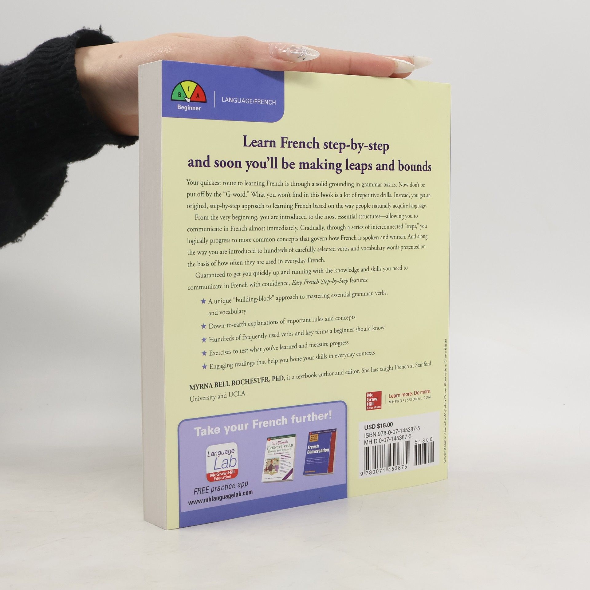 Get up and running with French Easy French Step-by-Step proves that a solid grounding in grammar basics is the key to mastering a second language. You are quickly introduced to grammatical rules and concepts in order of importance, which you can build on as you progress through the book. You will also learn more than 300 verbs, chosen by their frequency of use. Numerous exercises and engaging readings help you quickly build your speaking and comprehension prowess.