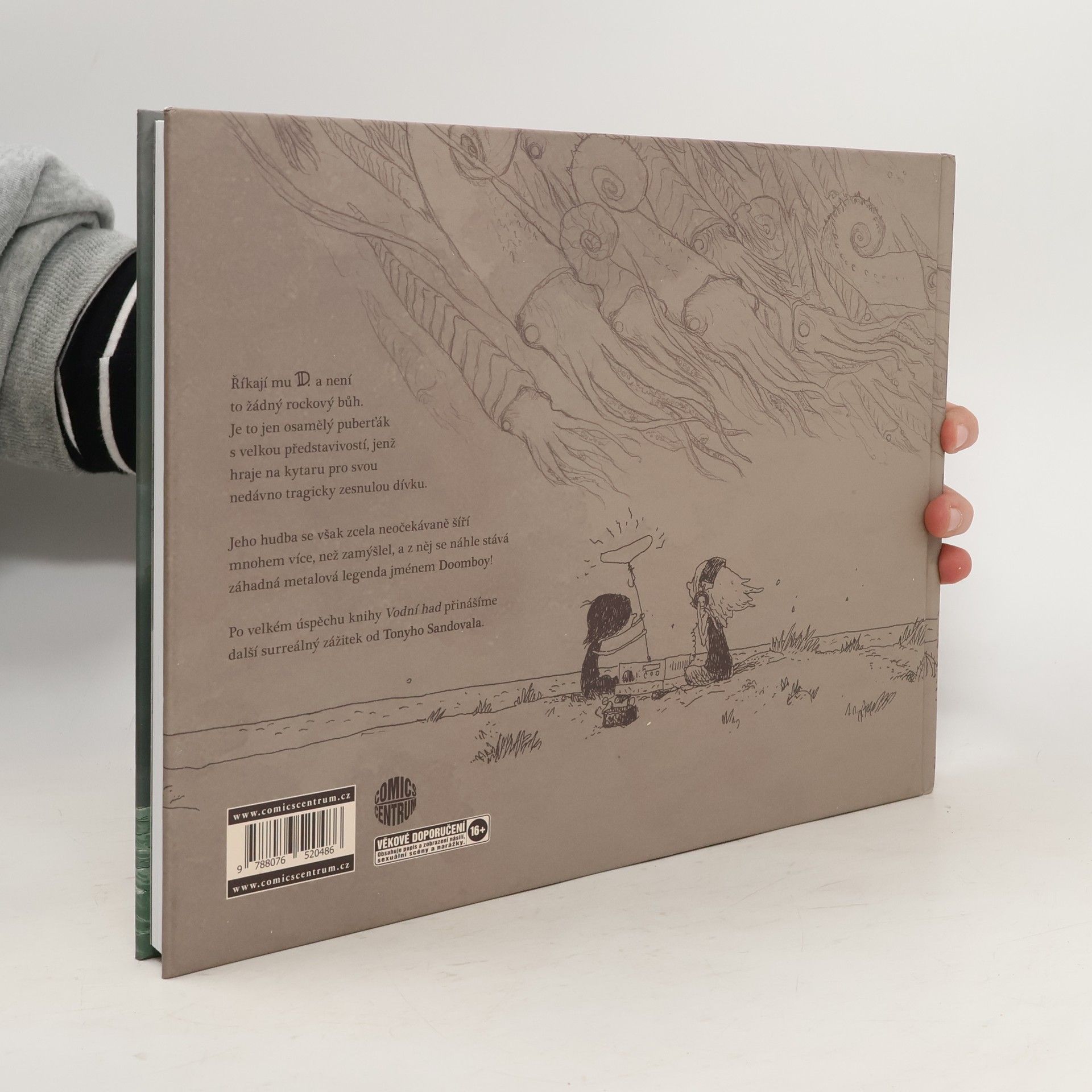 Říkají mu D. a není to žádný rockový bůh. Je to jen osamělý puberťák s velkou představivostí, jenž hraje na kytaru pro svou nedávno tragicky zesnulou dívku. Jeho hudba se však zcela neočekávaně šíří mnohem více, než zamýšlel, a z něj se náhle stává záhadná metalová legenda jménem Doomboy! Po velkém úspěchu knihy Vodní had přinášíme další surreálný zážitek od Tonyho Sandovala.