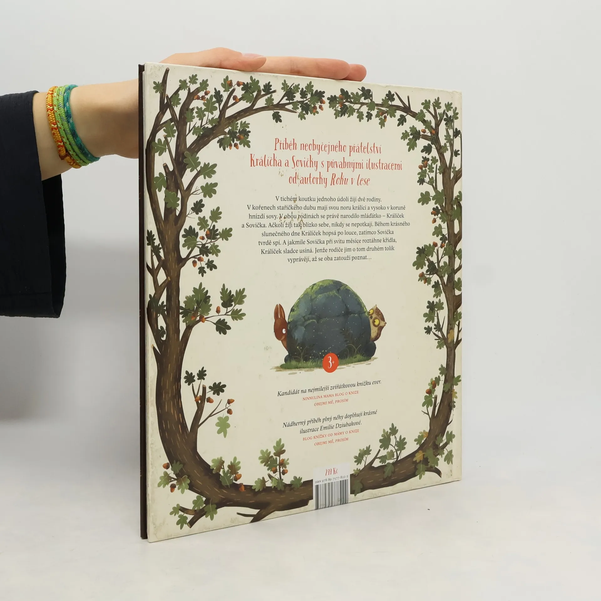 Příběh neobyčejného přátelství králíčka a sovičky s půvabnými ilustracemi od autorky Roku v lese. U kořenů starého dubu bydlí králičí rodinka a vysoko v koruně nad nimi hnízdí sovy. V obou rodinách se právě narodilo mláďátko. Ačkoli žijí tak blízko sebe, málokdy se potkají. Když je krásný, slunečný den a Králíček běhá po louce, Sovička tvrdě spí. A jakmile Sovička v odlesku měsíce roztáhne křídla, Králíček sladce usíná. Tak ubíhají dny i noci a Králíček se Sovičkou se nikdy nepotkají. Jenže rodiče jim o tom druhém tolik vyprávějí, až se oba zatouží poznat… Pro děti od tří let. ---- Nádherný příběh plný něhy doplňují krásné ilustrace Emilie Dziubakové. - Blog Knížky od mámy o knize Obejmi mě, prosím Kandidát na nejmilejší zvířátkovou knížku ever. - Ninnulina mama blog o knize Obejmi mě, prosím