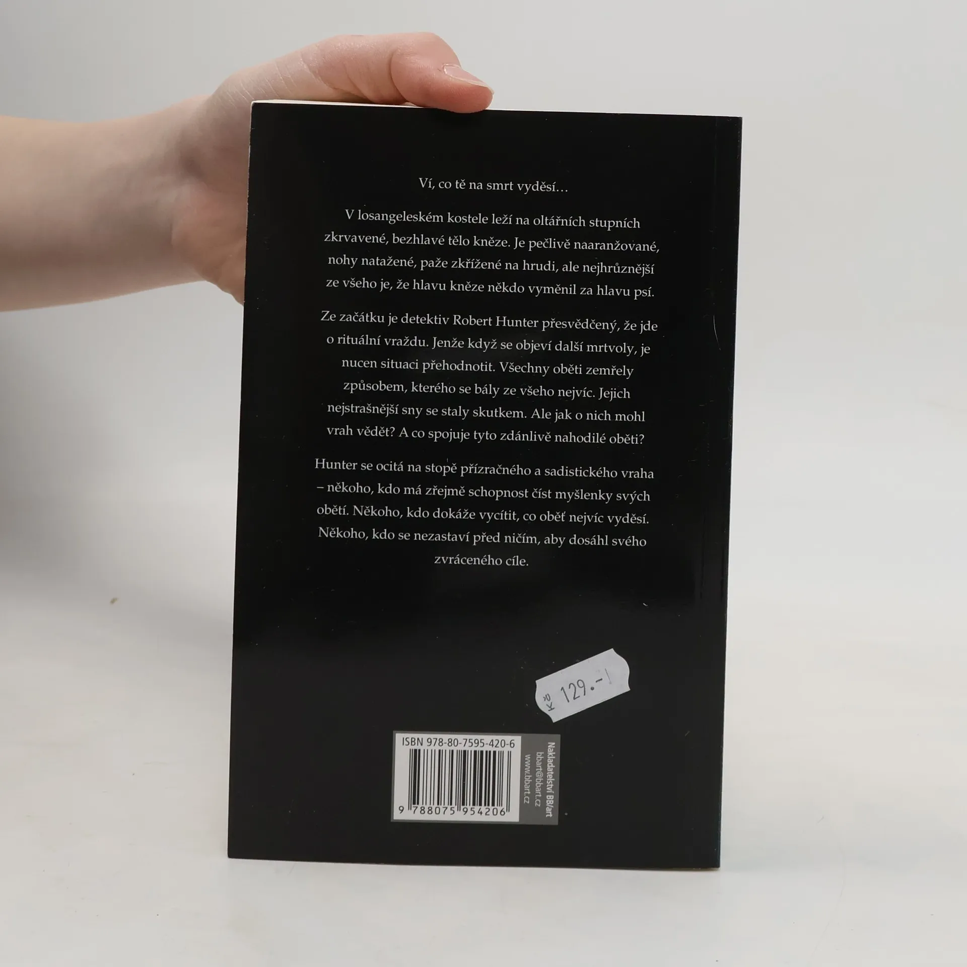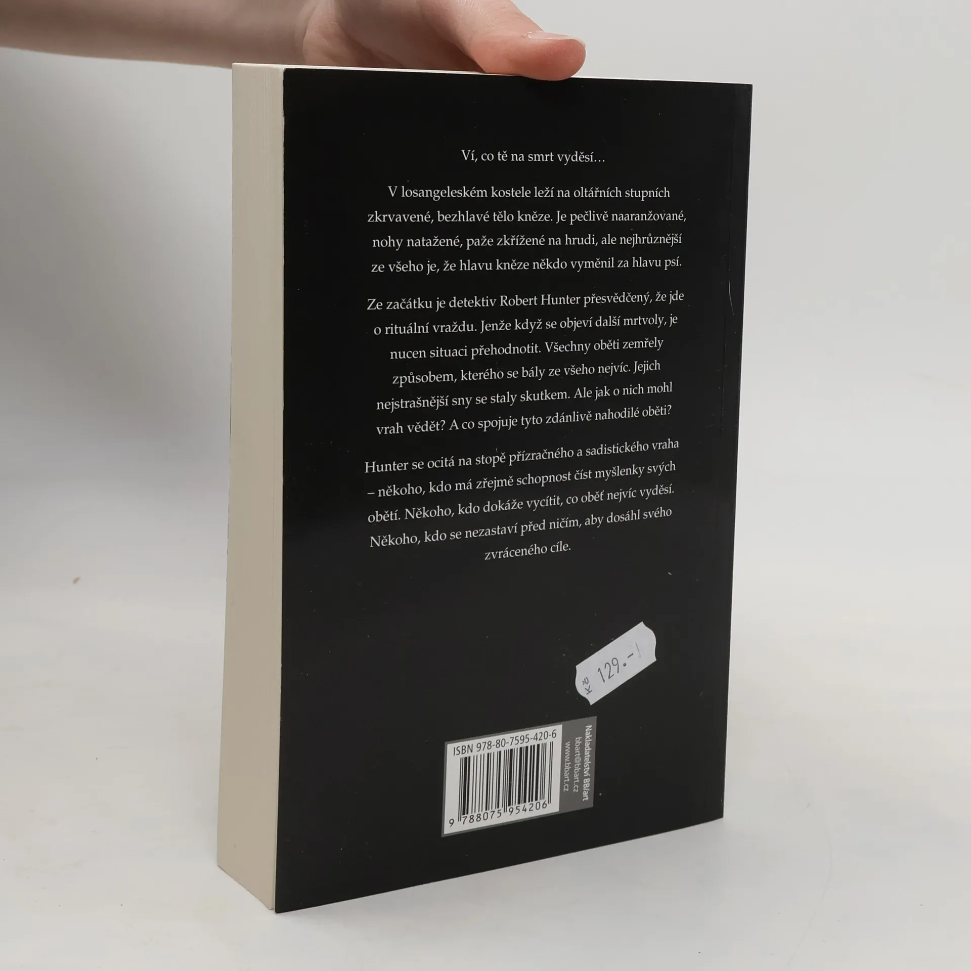Ví, co tě na smrt vyděsí… V losangeleském kostele leží na oltářních stupních zkrvavené, bezhlavé tělo kněze. Je pečlivě naaranžované, nohy natažené, paže křížené na hrudi, ale nejhrůznější ze všeho je, že hlavu kněze někdo vyměnil za hlavu psí. Ze začátku je detektiv Robert Hunter přesvědčený, že jde o rituální vraždu. Jenže když se objeví další mrtvoly, je nucen situaci přehodnotit. Všechny oběti zemřely způsobem, kterého se bály ze všeho nejvíc. Jejich nejstrašnější sny se staly skutkem. Ale jak o nich mohl vrah vědět? A co spojuje tyto zdánlivě nahodilé oběti? Hunter se ocitá na stopě přízračného a sadistického vraha – někoho, kdo má zřejmě schopnost číst myšlenky svých obětí. Někoho, kdo dokáže vycítit, co oběť nejvíc vyděsí. Někoho, kdo se nezastaví před ničím, aby dosáhl svého zvráceného cíle.