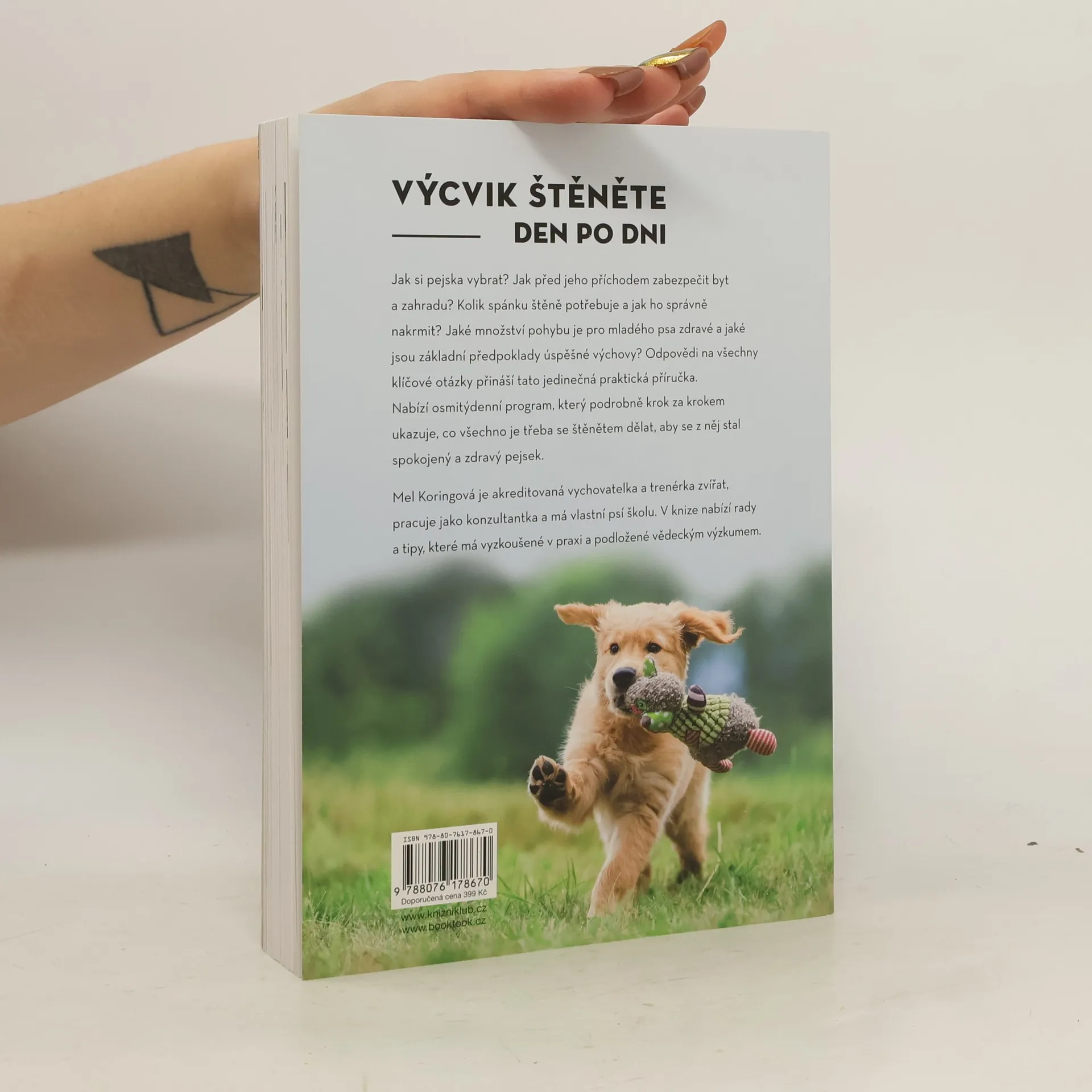 Jak si pejska vybrat? Jak před jeho příchodem zabezpečit byt a zahradu? Kolik spánku štěně potřebuje a jak ho správně nakrmit? Jaké množství pohybu je pro mladého psa zdravé a jaké jsou základní předpoklady úspěšné výchovy? Odpovědi na všechny klíčové otázky přináší tato jedinečná praktická příručka. Nabízí osmitýdenní program, který podrobně krok za krokem ukazuje, co všechno je třeba se štěnětem dělat, aby se z něj stal spokojený a zdravý pejsek. Mel Koringová je akreditovaná vychovatelka a trenérka zvířat, pracuje jako konzultantka a má vlastní psí školu. Ve své knize nabízí rady a tipy, které má vyzkoušené v praxi a podložené vědeckým výzkumem.