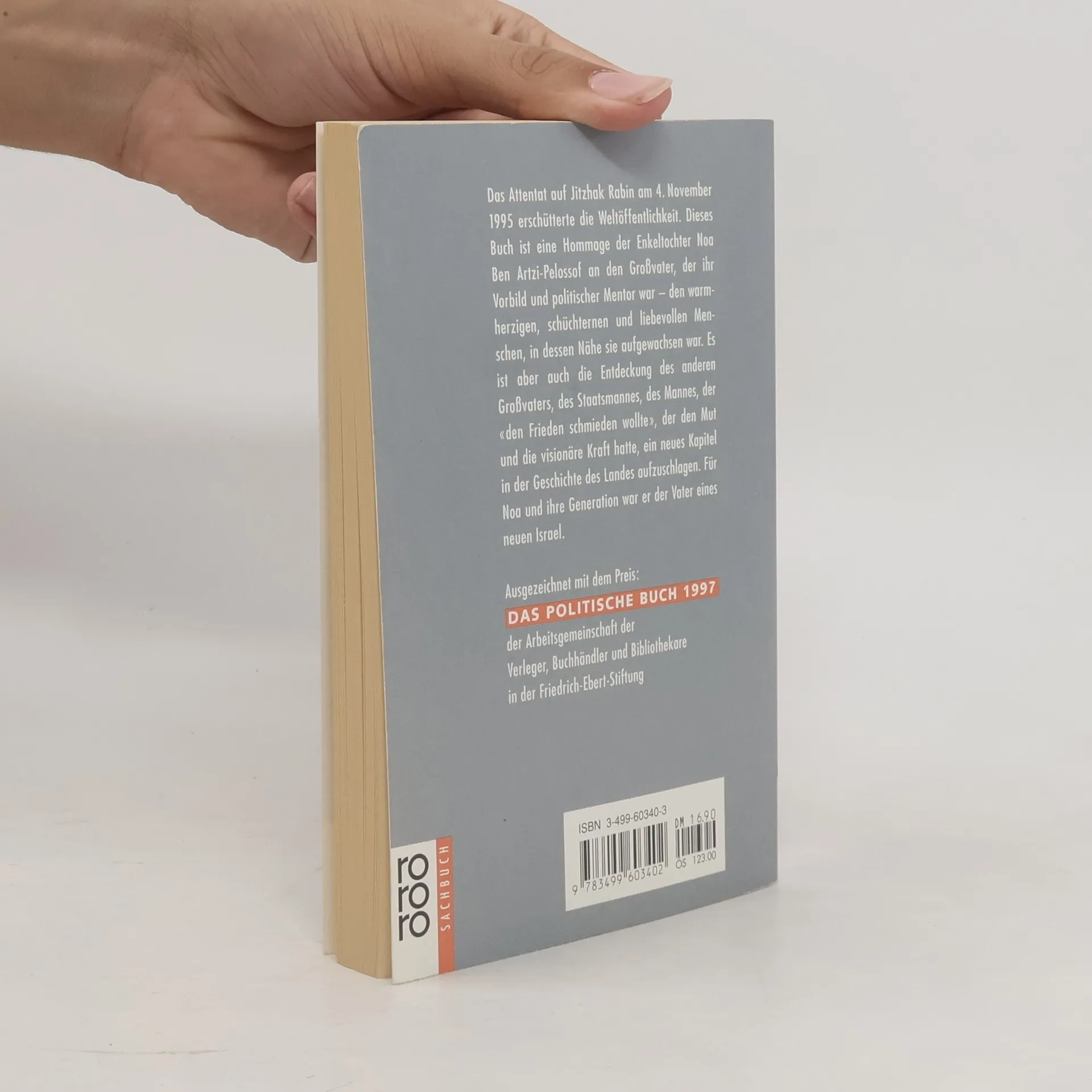 Er wurde ein Opfer des Hasses: Das Attentat auf den israelischen Ministerpräsidenten Jitzhak Rabin am 4. November 1995, als ihn die Kugeln des jüdischen Extremisten Jigal Amir trafen, erschütterte die Weltöffentlichkeit. Eine Bedrohung für den prekären Friedensprozeß im Nahen Osten, eine Tragödie für seine Familie, ein unersetzlicher Verlust für seine 18jährige Enkeltochter Noa, die ihm nahestand wie kaum jemand.§Dieses Buch ist eine Hommage der Enkeltochter an den Großvater, der Geschichten erzählen konnte, ihre Gedichte sammelte, ihr Vorbild und politischer Mentor war - den warmherzigen, schüchternen und liebevollen Menschen, in dessen Nähe sie aufgewachsen war. Es ist aber auch die Entdeckung des anderen Großvaters, des Staatsmannes. Für Noa und ihre Generation war er der Vater eines neuen Israel.