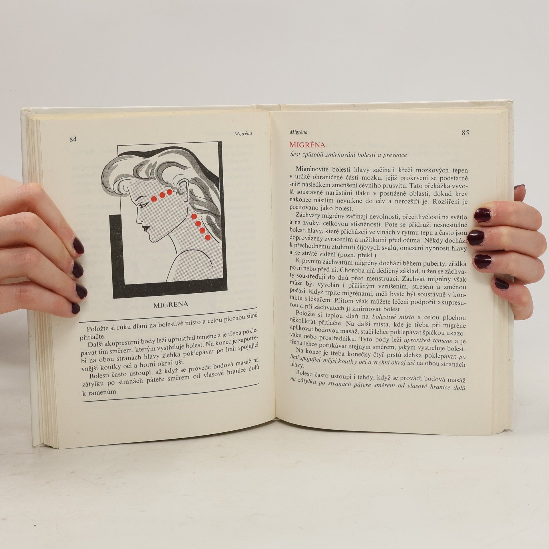 Utišuje bolesti bez léků. Akupresura,cílená tlaková masáž pomocí prstů, vychází ze skušeností nstarých čínských lékařů, kteří jí s úspěchem používali k utišení bolestí při různých chorobách a léčebných zákrocích.Je prověřena praxí trvající déle než 5000 let. V současnosti se stala účinným prostředkem samoléčby a je proto nanejvýš potřebná.Dokážete jí zvládnout i vy, když budete mít po ruce tuto praktickou knížku.Pomůže vám snadno a bez léků úspěšně čelit častým onemocněním a zdravotním potížím, zlepšit fyzickou a psychickou výkonnost a nabýt dobré nálady a sebevědomí.