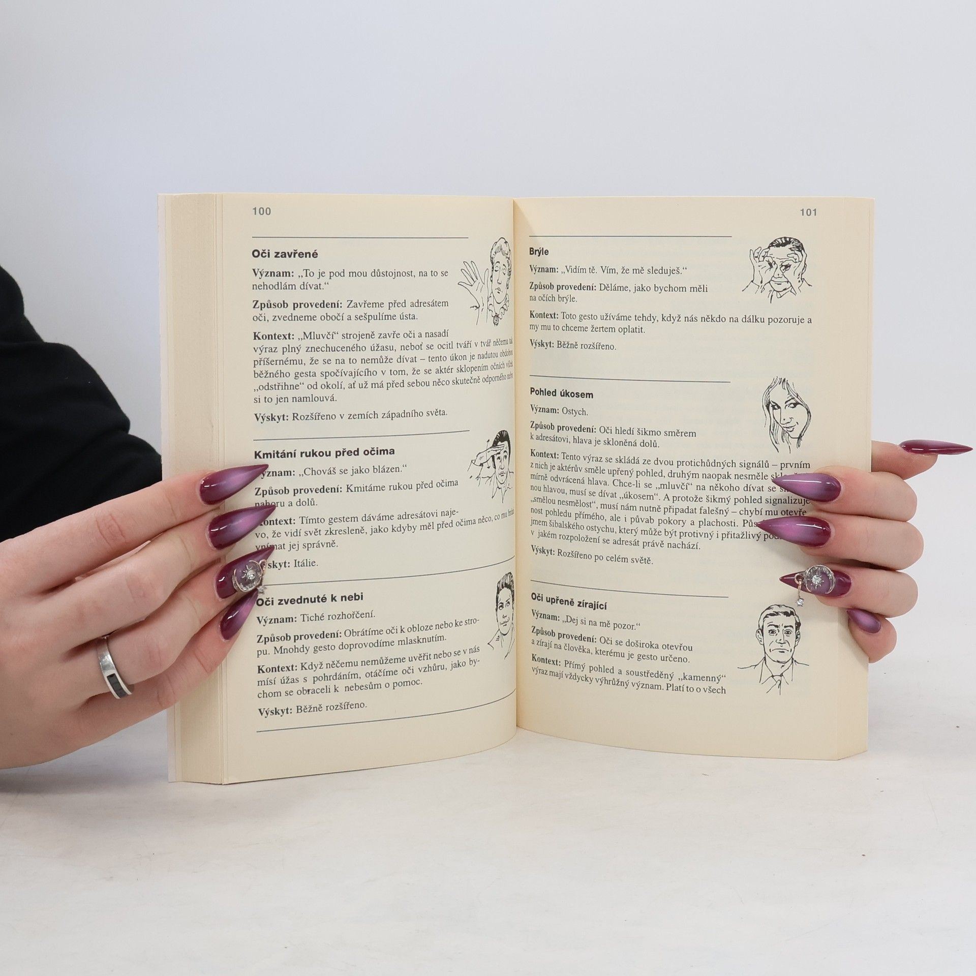 Tato nejúspěšnější encyklopedie mimoslovní komunikace v 654 heslech popisuje gesta, která my lidé používáme k vzájemnému dorozumívání. Autor procestoval přes 60 zemí a v této knize slovně i obrazem, stručně, výstižně a vtipně informuje nejen o tom, co jednotlivá gesta vědomá i podvědomá znamenají, ale i o jejich původu, společenských souvislostech, o jejich dějinných osudech a geografickém rozšíření.