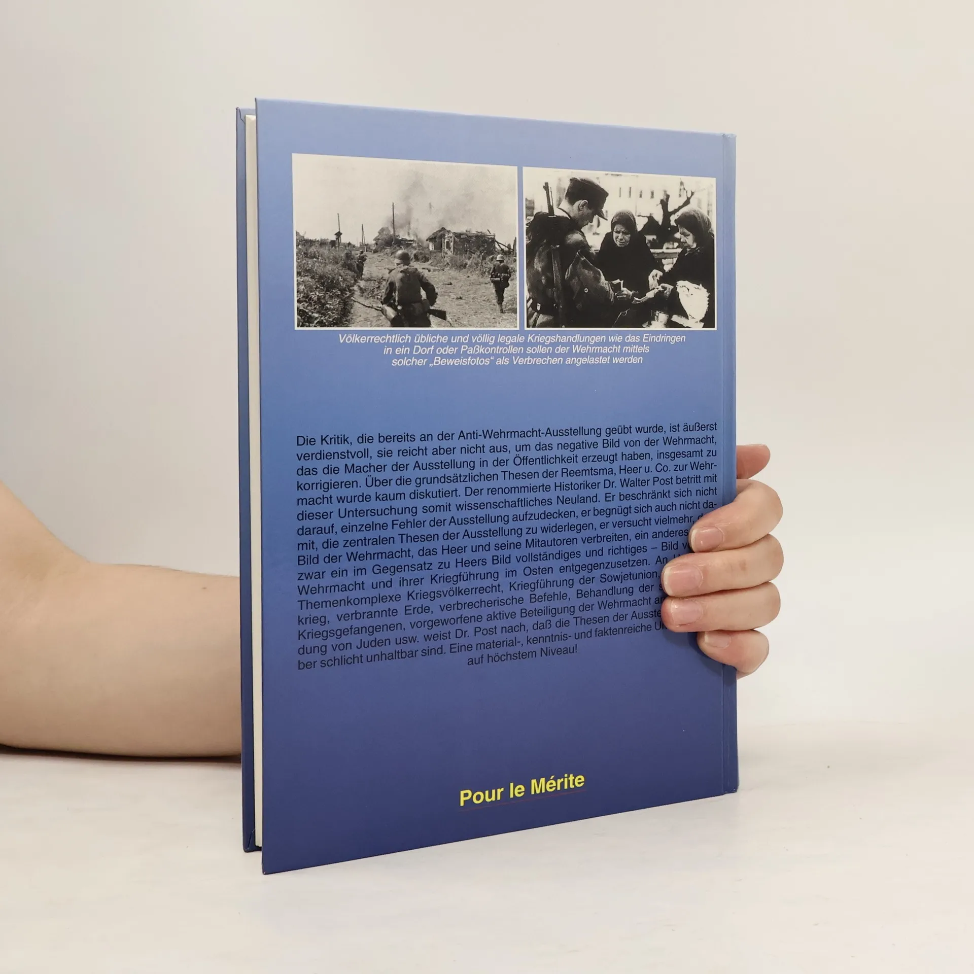 In seiner Studie zeichnet der renommierte Historiker Dr. Walter Post ein vorurteilsfreies Bild der Wehrmacht und ihrer Kriegführung im Osten. Anhand der Themenkomplexe Kriegsvölkerrecht, Kriegführung der Sowjetunion, Partisanenkrieg, verbrannte Erde, verbrecherische befehle, Behandlung sowjetischer Kriegsgefangener, angebliche Beteiligung der Wehrmacht an der Ermordung von Juden usw. weist Dr. Post nach, daß Thesen, wie sie die Anti-Wehrmachtausstellung auch in ihrer Neufassung noch immer propagiert, schlicht unhaltbar sind. Eine material-, kenntnis- und faktenreiche Untersuchung auf höchstem Niveau.