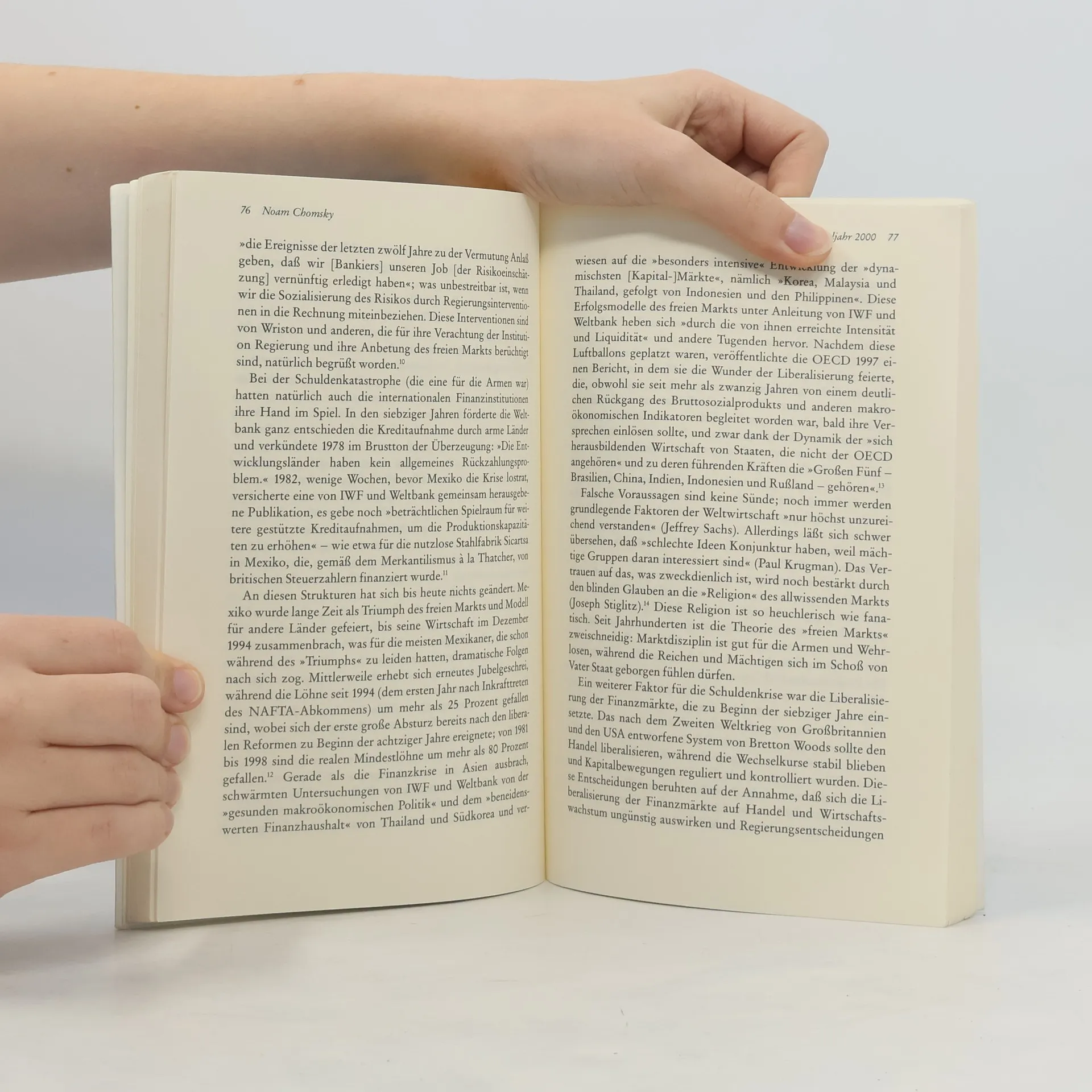 Dieses Buch bietet eine scharfsichtige Analyse der dunklen Seite der herrschenden weltpolitischen und weltökonomischen Rationalität. Chomsky argumentiert, dass das dominierende Prinzip der Weltwirtschaft ruinös ist, insbesondere für die Menschen in Ländern, die von korrupten Regierungen in die Schuldenfalle geführt wurden, unterstützt von mächtigen Staaten und Konzernen. Er kritisiert die fortgesetzte Missachtung des Völkerrechts, insbesondere durch die USA, die er als Schurkenstaat bezeichnet. Die provokanten politischen Thesen des renommierten Sprachwissenschaftlers bauen auf den Diagnosen seines vorherigen Werkes auf, in dem er die Wunden des Weltwirtschaftssystems aufzeigte, das er als Angriff auf Demokratie, Freiheit, Souveränität und Menschenrechte betrachtet. Der zentrale Slogan dieses Angriffs lautet: „Es gibt keine Alternative.“ Chomsky hingegen sieht sehr wohl Alternativen, da die sozioökonomische Ordnung das Ergebnis menschlicher Entscheidungen in von Menschen geschaffenen Institutionen ist. Diese Entscheidungen können widerrufen und Institutionen verändert oder gar zerschlagen werden. „Das haben aufrechte und mutige Menschen im Lauf der Geschichte immer wieder vollbracht.“ Diese Diagnose und Mahnung, besonders nach dem 11. September 2001, erzeugt furchtbare Assoziationen und sollte daher aufmerksam studiert werden.