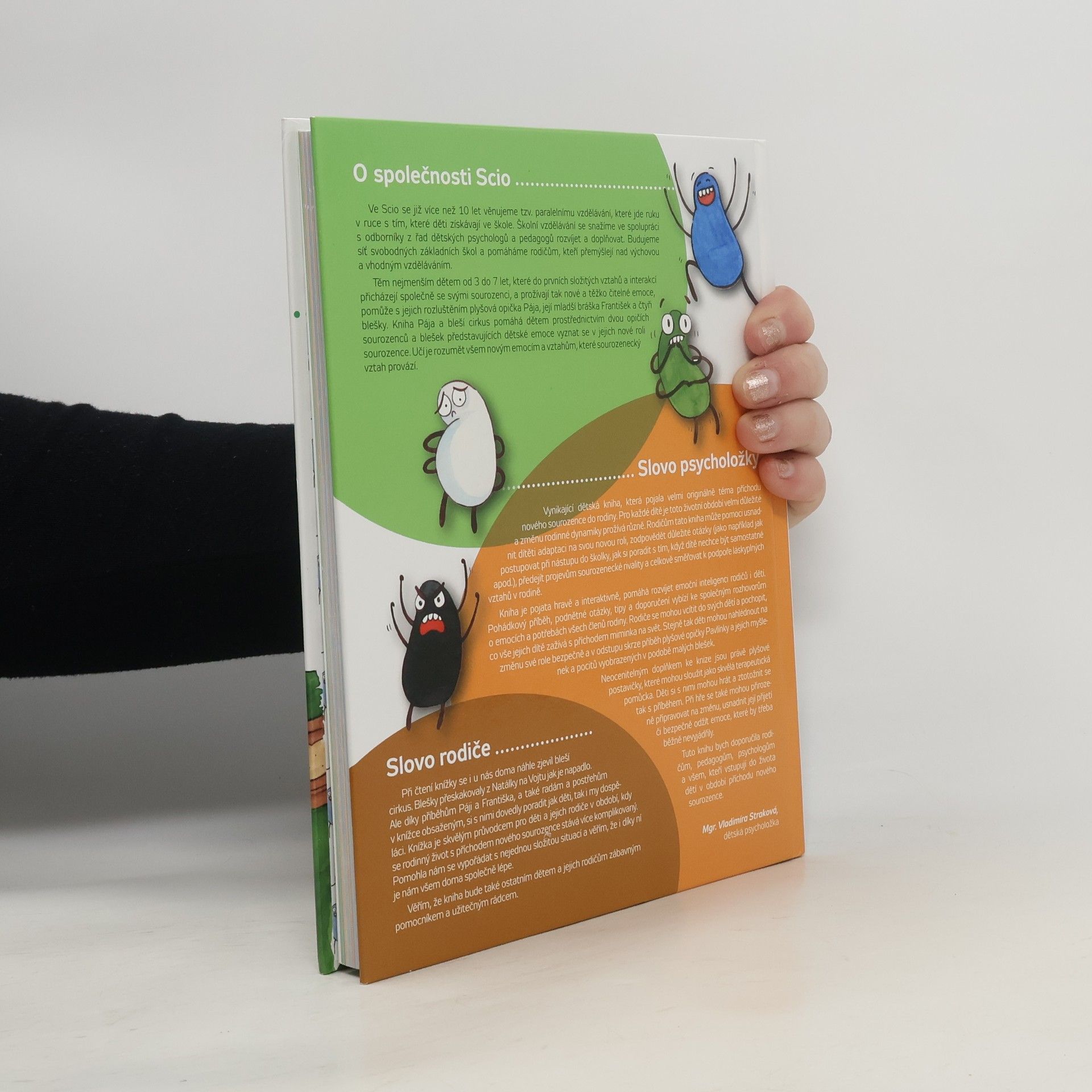 Pro děti 3 – 7 let. Pája a bleší cirkus je kniha pro nejmenší pro sourozence a sourozencích. V knize opičku Páju provází blešky, představující typické role v období narození sourozence.