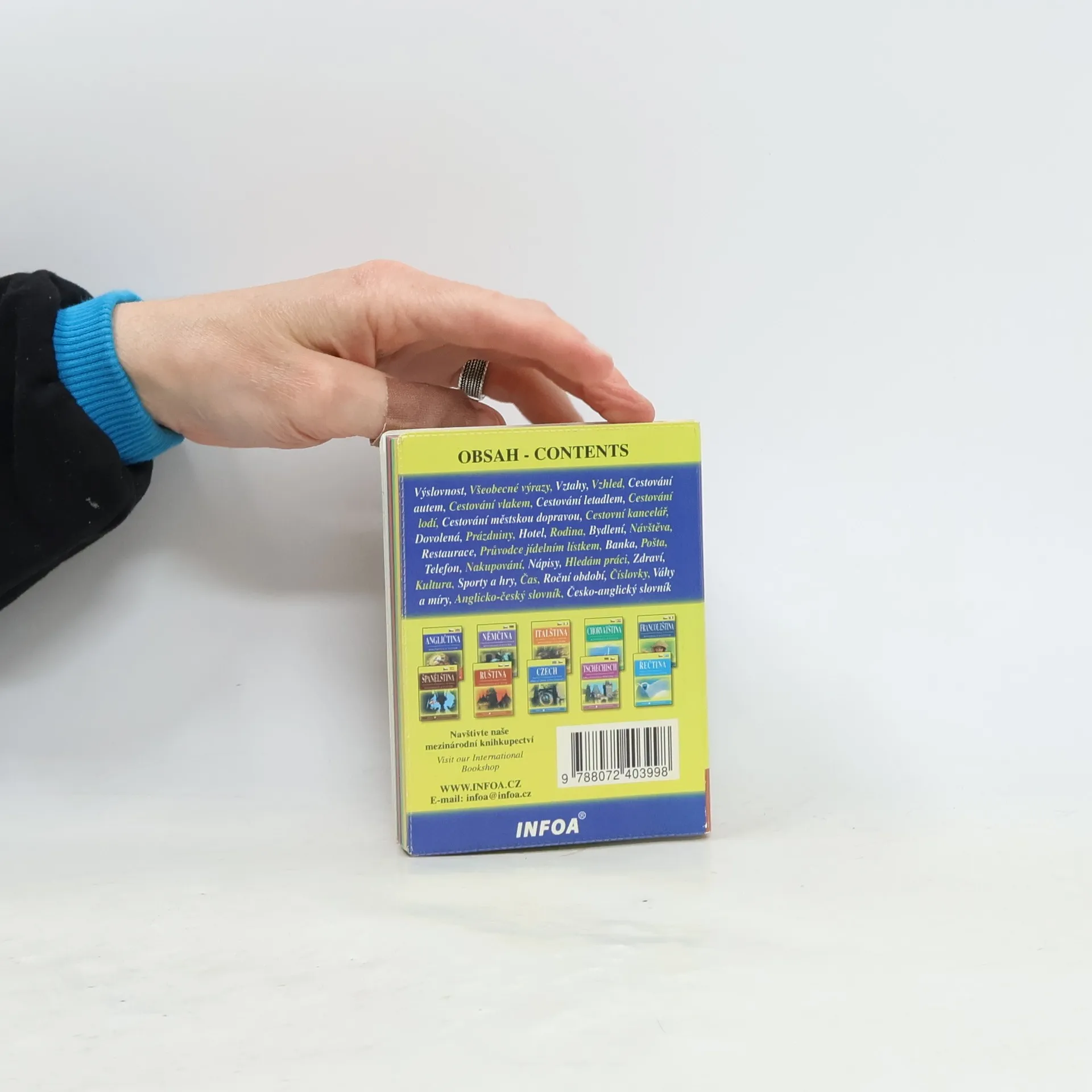 Konverzace a základní slovníček v jednom. Tato přehledná jazyková příručka se stane vaším neocenitelným průvodcem na cestách v zahraničí. Obsahuje základní konverzační témata potřebná v situacích, které nás při cestování mohou potkat – hotel, restaurace, nakupování, doprava, kultura a mnoho dalších. Jednotlivé kapitoly jsou barevně členěny podle tématu, kterému se věnují, a jsou tak mnohem přehlednější pro běžné využití v daném okamžiku. Druhou část jazykového průvodce na cesty tvoří oboustranný slovníček. Novinkou je možnost získat na stránkách nakladatele zvukovou verzi konverzace v anglickém jazyce, kterou publikace obsahuje.