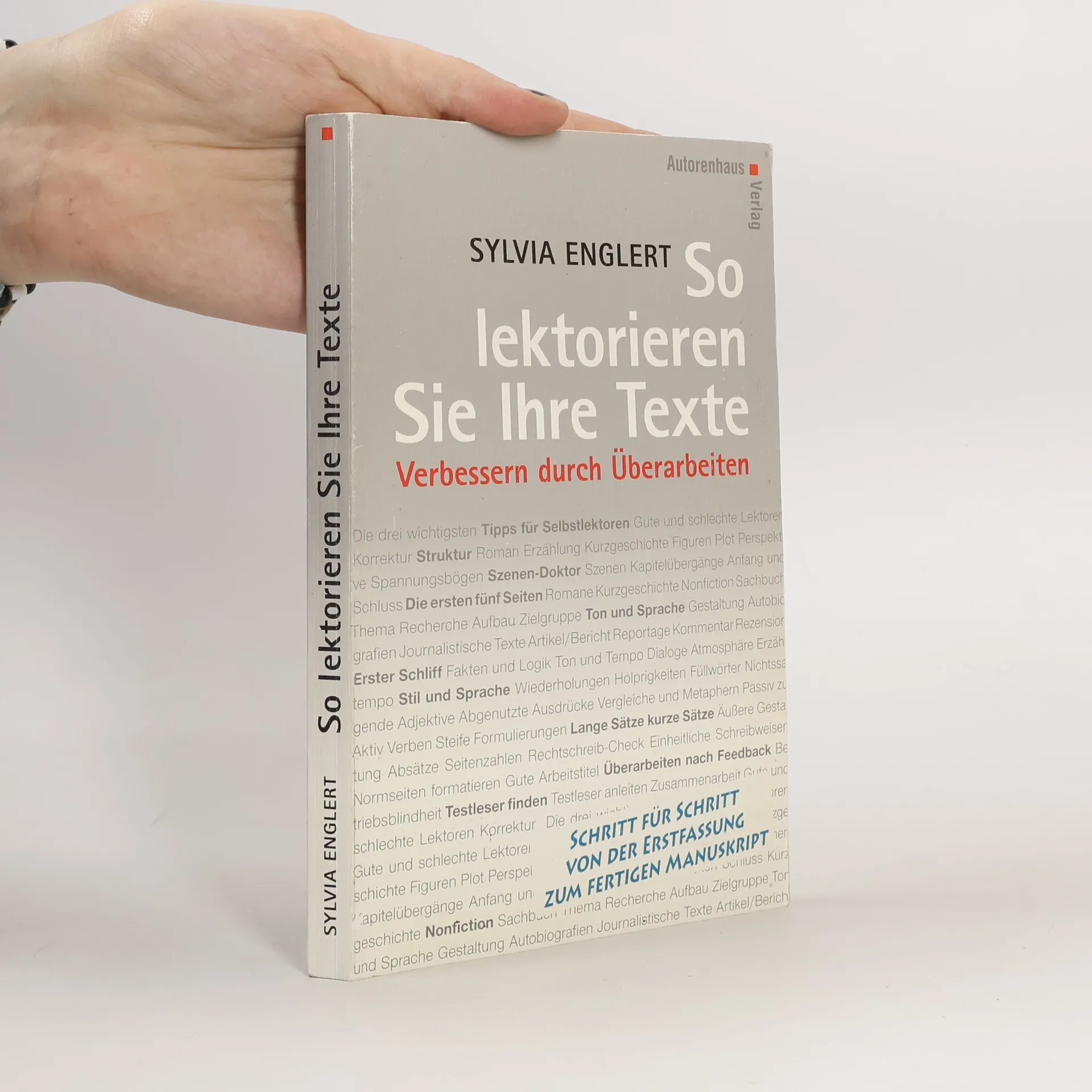 In Ihrem neuen Ratgeber empfiehlt Sylvia Englert, den Text in drei Schritten genauer unter die Lupe zu nehmen – zuerst geht es um grundsätzliche Dinge wie Struktur, Plot und Figuren überprüfen, denn die müssen funktionieren. Im zweiten Schritt, dem Schliff, geht es hauptsachlich um Stil, Sprache und Fakten. Der dritte Schritt ist, sich Meinungen von Testlesern zu holen, denn nur so bekommen Sie mit, wie andere Menschen auf Ihr Projekt reagieren. Wenn Sie deren Anregungen eingearbeitet haben, ist Ihr Manuskript vorzeigbar und bereit, ein Buch zu werden.