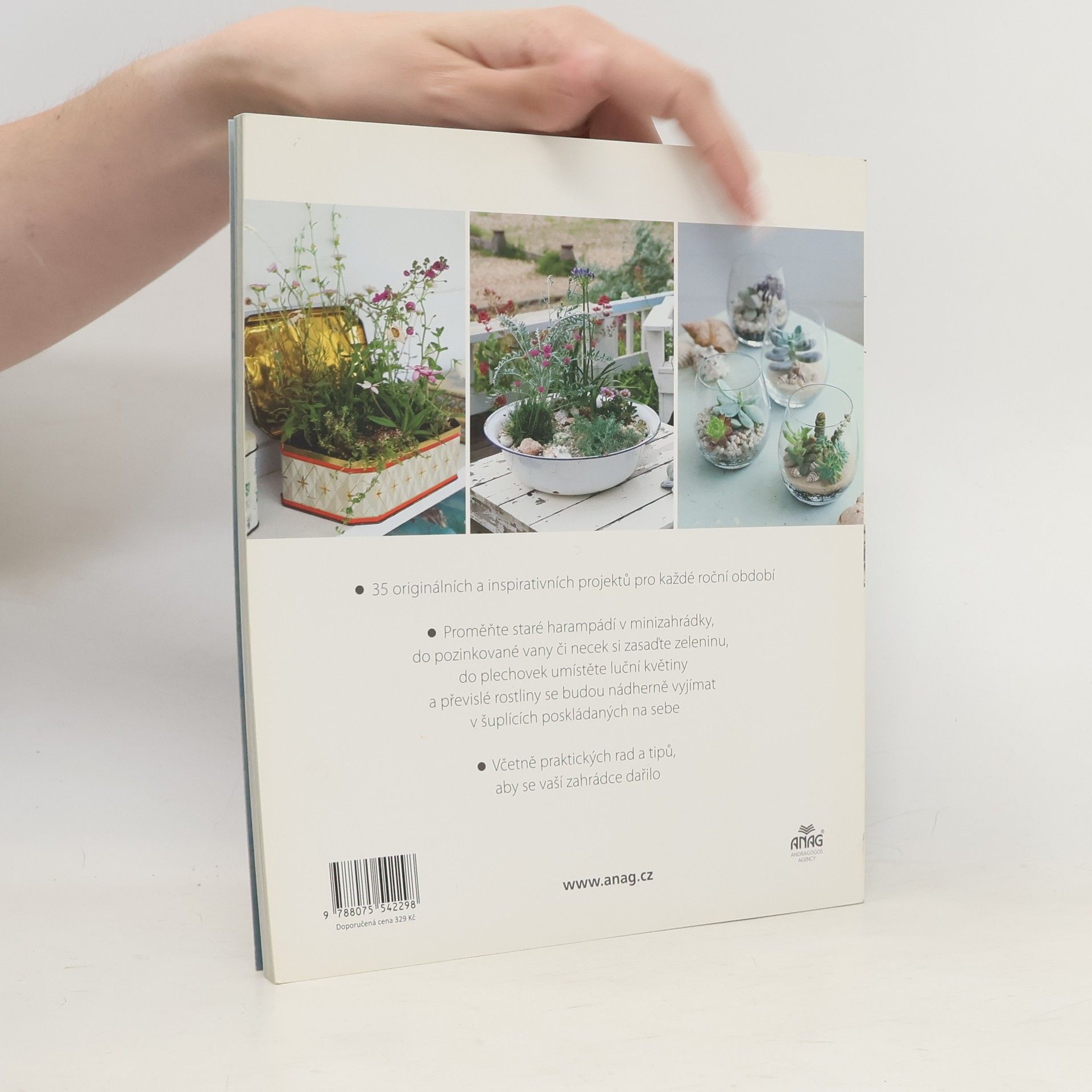 35 unikátních projektů, které plně využijí jakýkoliv malý prostor, ať už žijete na venkově nebo ve městě. Zahradničení v nejmenších měřítcích zahrnuje nápady pro vnitřní i venkovní prostory, jako jsou zahrady, balkony, okenní parapety či stolky. Projekty zahrnují elegantní kapradinová terária, voňavé jarní košíky, barevné tkané tašky a pytle s veselými letními květy. Čtenáři objeví jedlé zahrady, například ovocné keře zasazené do kuchyňských pánví a bylinky na dřevěných schůdkách ve vertikální zahradě. Nápady zahrnují použití zachráněných kontejnerů, jako je kovová vana plná zeleniny, nádoby na potraviny pro vnitřní květinovou zahradu a dřevěné zásuvky s převislými rostlinami. Na nejobtížnějším konci spektra jsou miniaturní zahrádky ve skořápkách od vajec. Děti se mohou naučit základní dovednosti zahradničení tím, že krok za krokem vytvoří kouzelné pohádkové zahrady nebo záhadné dinosauří bažiny. Ať už hledáte celoroční zeleň, letní květiny, nebo chcete pěstovat vlastní zeleninu a bylinky, tato kniha nabízí inspiraci a praktické znalosti, které potřebujete pro vylepšení vašeho okolí.