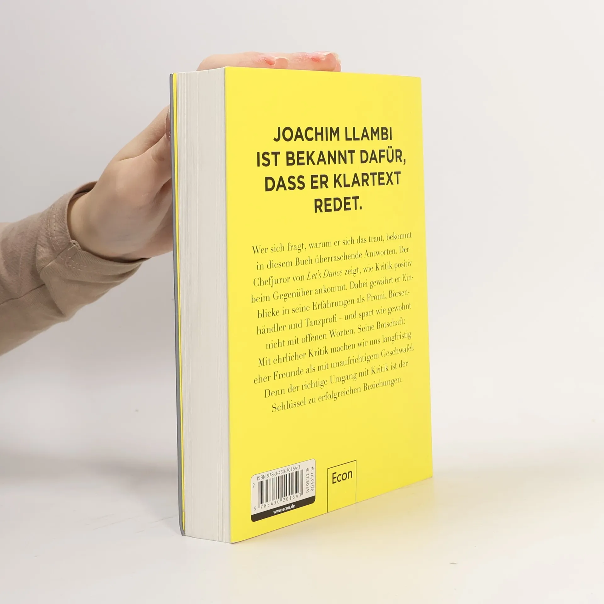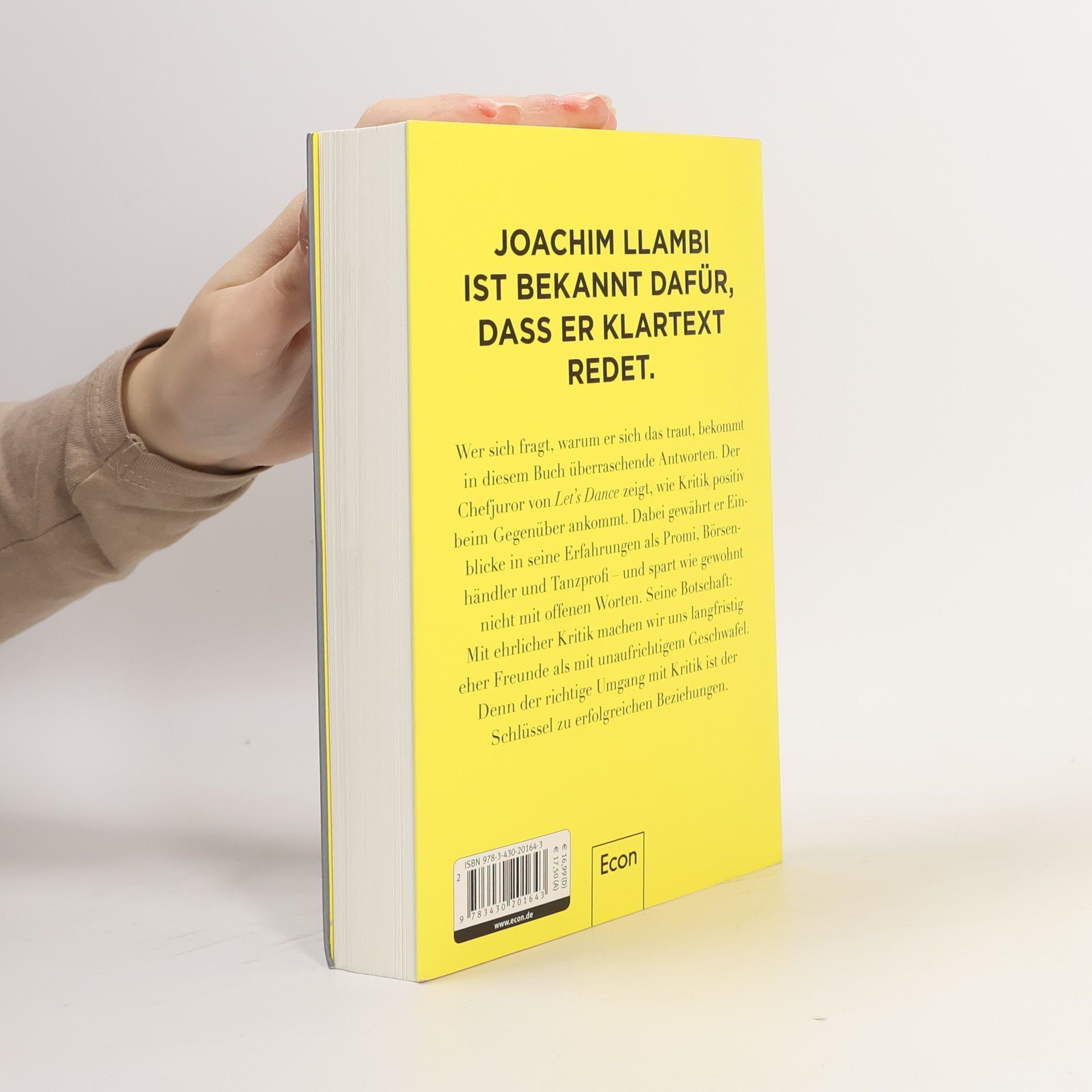 JOACHIM LLAMBI IST BEKANNT DAFÜR, DASS ER KLARTEXT REDET. Wer sich fragt, warum er sich das traut, bekommt in diesem Buch überraschende Antworten. Der Chefjuror von Let’s Dance zeigt, wie Kritik positiv beim Gegenüber ankommt. Dabei gewährt er Einblicke in seine Erfahrungen als Promi, Börsenhändler und Tanzprofi – und spart wie gewohnt nicht mit offenen Worten. Seine Botschaft: Mit ehrlicher Kritik machen wir uns langfristig eher Freunde als mit unaufrichtigem Geschwafel. Denn der richtige Umgang mit Kritik ist der Schlüssel zu erfolgreichen Beziehungen.