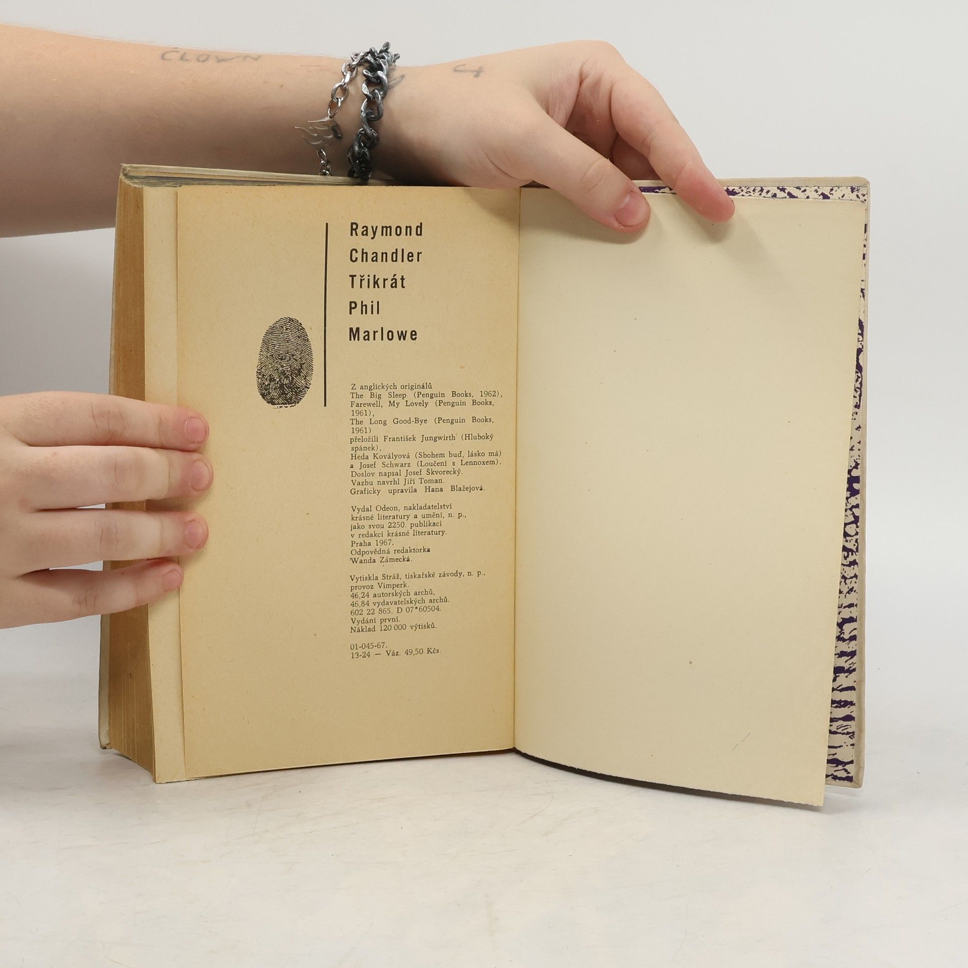 Tento svazek obsahuje díla vydaná samostatně: Hluboký spánek (The big sleep, 1939), Loučení s Lennoxem (The long goodbye, 1954), Sbohem buď, lásko má (Farewell, my lovely, 1940). Tři detektivky napsané zakladatelem americké drsné školy, nejvýznamnějším zástupcem tzv. Hard-boiled fiction. Z anglických originálů The Big Sleep (Penguin Books, 1962), Farewell, My Lovely (Penguin Books, 1961), The Long Good-Bye (Penguin Books, 1961) přeložili František Jungwirth (Hluboký spánek), Heda Kovályová (Sbohem buď, lásko má) a Josef Schwarz (Loučení s Lennoxem). Doslov (Raymond Chandler a souvislosti „drsné školy“) napsal Josef Škvorecký. Vydání první.