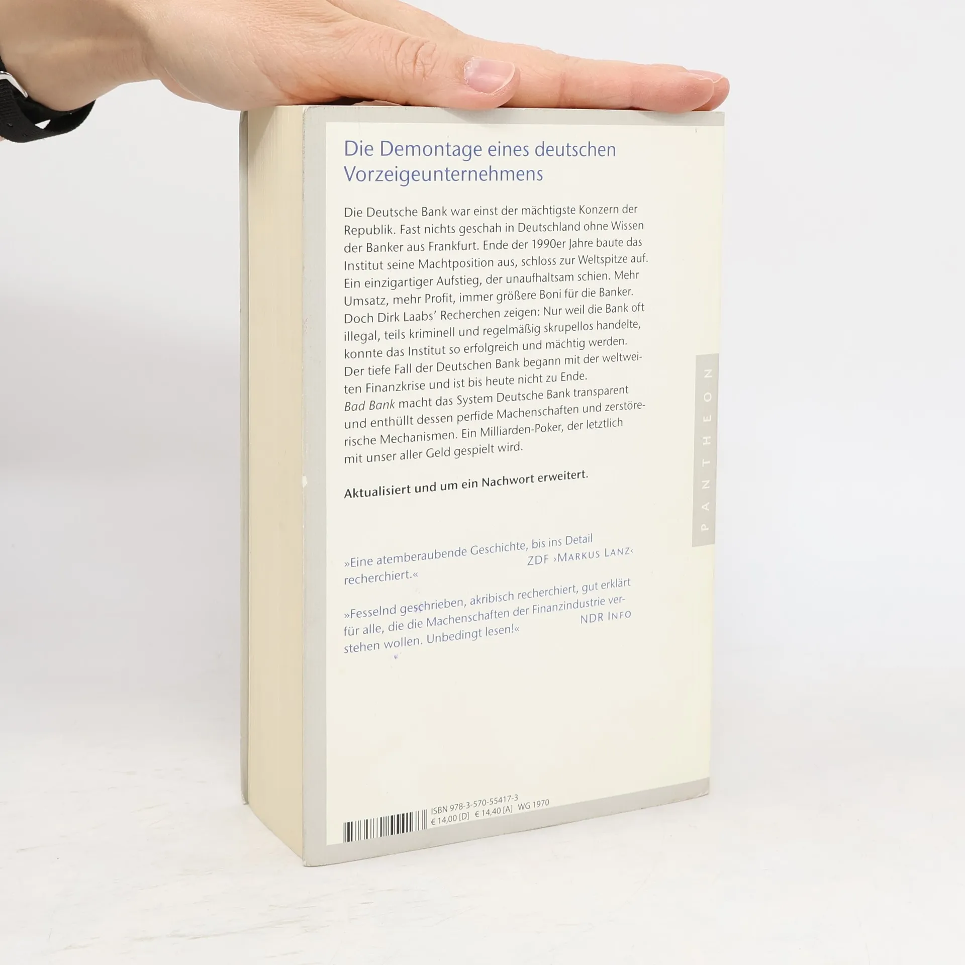 Deutsche Bank: Die Demontage eines deutschen Vorzeigeunternehmens Die Deutsche Bank war einst der mächtigste Konzern der Republik. Fast nichts geschah in Deutschland ohne Wissen der Banker aus Frankfurt. Ende der 1990er Jahre baute das Institut seine Machtposition aus, schloss zur Weltspitze auf. Ein einzigartiger Aufstieg, der unaufhaltsam schien. Mehr Umsatz, mehr Profit, immer größere Boni für die Banker. Doch Dirk Laabs’ Recherchen zeigen: Nur weil die Bank oft illegal, teils kriminell und regelmäßig skrupellos handelte, konnte das Institut so erfolgreich und mächtig werden. Der tiefe Fall der Deutschen Bank begann mit der weltweiten Finanzkrise und ist bis heute nicht zu Ende. »Bad Bank« macht das System Deutsche Bank transparent und enthüllt dessen perfide Machenschaften und zerstörerische Mechanismen. Ein Milliarden-Poker, der letztlich mit unser aller Geld gespielt wird. Aktualisiert und um ein Nachwort erweitert. »Eine atemberaubende Geschichte bis ins Detail recherchiert.« (ZDF „Markus Lanz“)