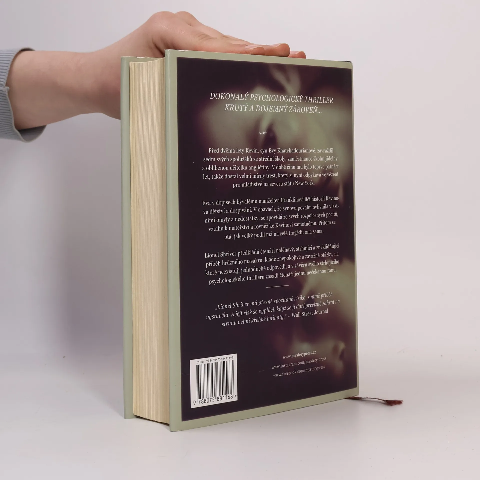 DOKONALÝ PSYCHOLOGICKÝ THRILLER, KRUTÝ A DOJEMNÝ ZÁROVEŇ… Před dvěma lety Kevin, syn Evy Khatchadourianové, zavraždil sedm svých spolužáků ze střední školy, zaměstnance školní jídelny a oblíbenou učitelku angličtiny. V době činu mu bylo teprve patnáct let, takže dostal velmi mírný trest, který si nyní odpykává ve vězení pro mladistvé na severu státu New York. Eva v dopisech bývalému manželovi Franklinovi líčí historii Kevinova dětství a dospívání. V obavách, že synovu povahu ovlivnila vlastními omyly a nedostatky, se zpovídá ze svých rozpolcených pocitů, vztahu k mateřství a rovněž ke Kevinovi samotnému. Přitom se ptá, jak velký podíl má na celé tragédii ona sama. Lionel Shriver předkládá čtenáři naléhavý, strhující a zneklidňující příběh hrůzného masakru, klade znepokojivé a závažné otázky, na které neexistují jednoduché odpovědi, a v závěru svého strhujícího psychologického thrilleru zasadí čtenáři jednu nečekanou ránu. ________ „Lionel Shriver má přesně spočítané riziko, s nímž příběh vystavěla. A její risk se vyplácí, když se jí daří precizně zahrát na strunu velmi křehké intimity.“ – Wall Street Journal